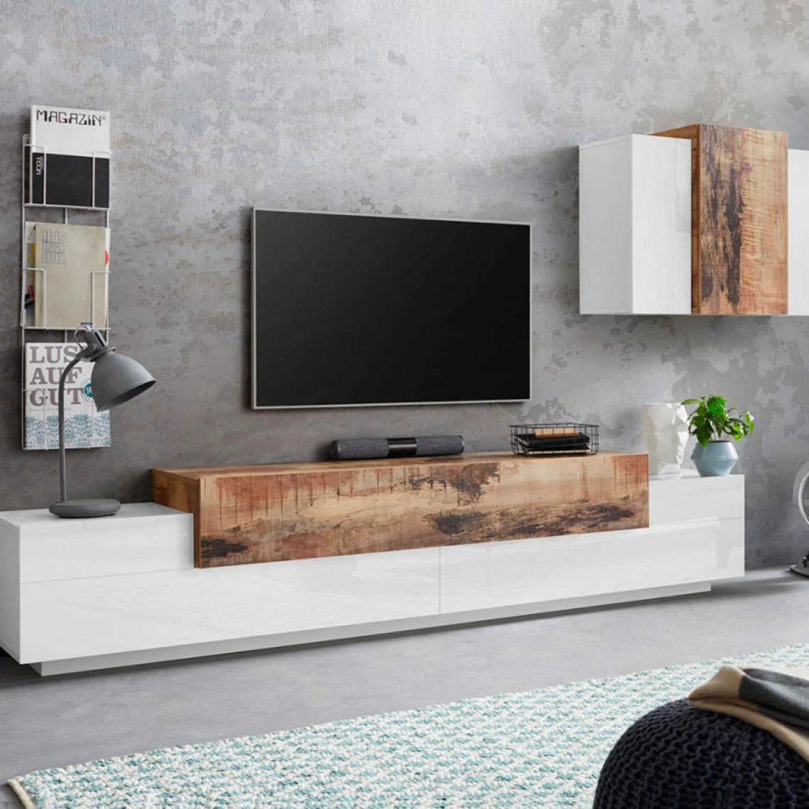 Points forts Ahd Amazing Home Design Ensemble de salon murale design moderne en bois blanc Corona Moby