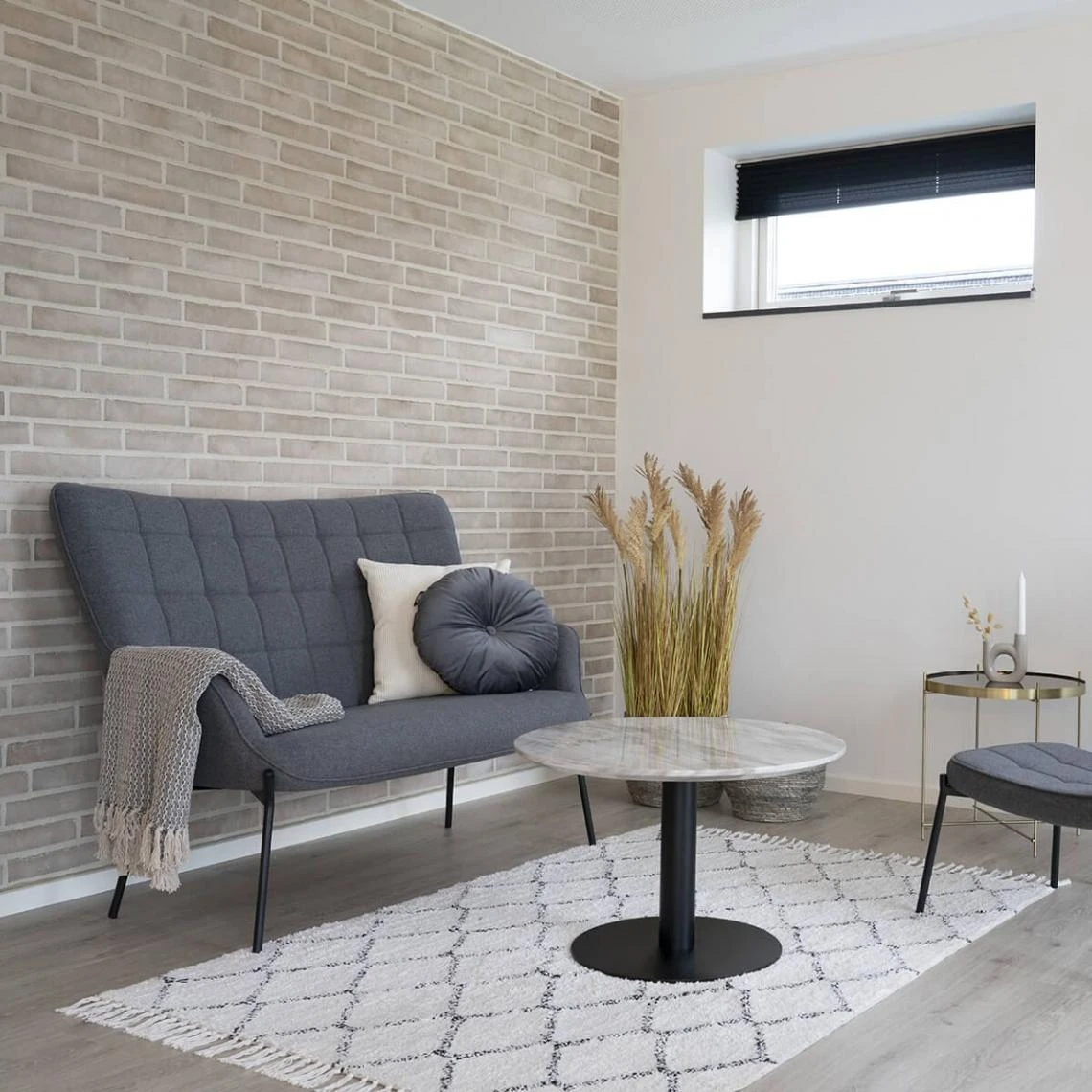 Table Basse Ronde Ø70cm Aspect Marbré et Pied Acier Noir de la gamme Tyrol.