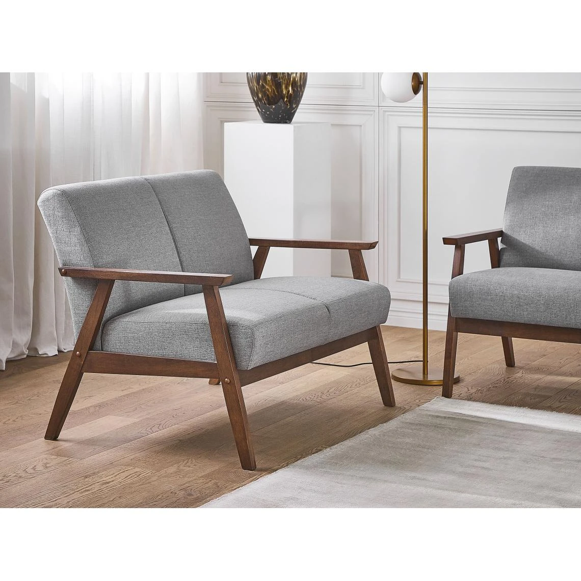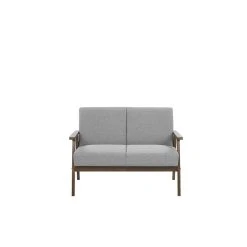 Canapé 2 places au style rétro en tissu gris avec structure en bois foncé