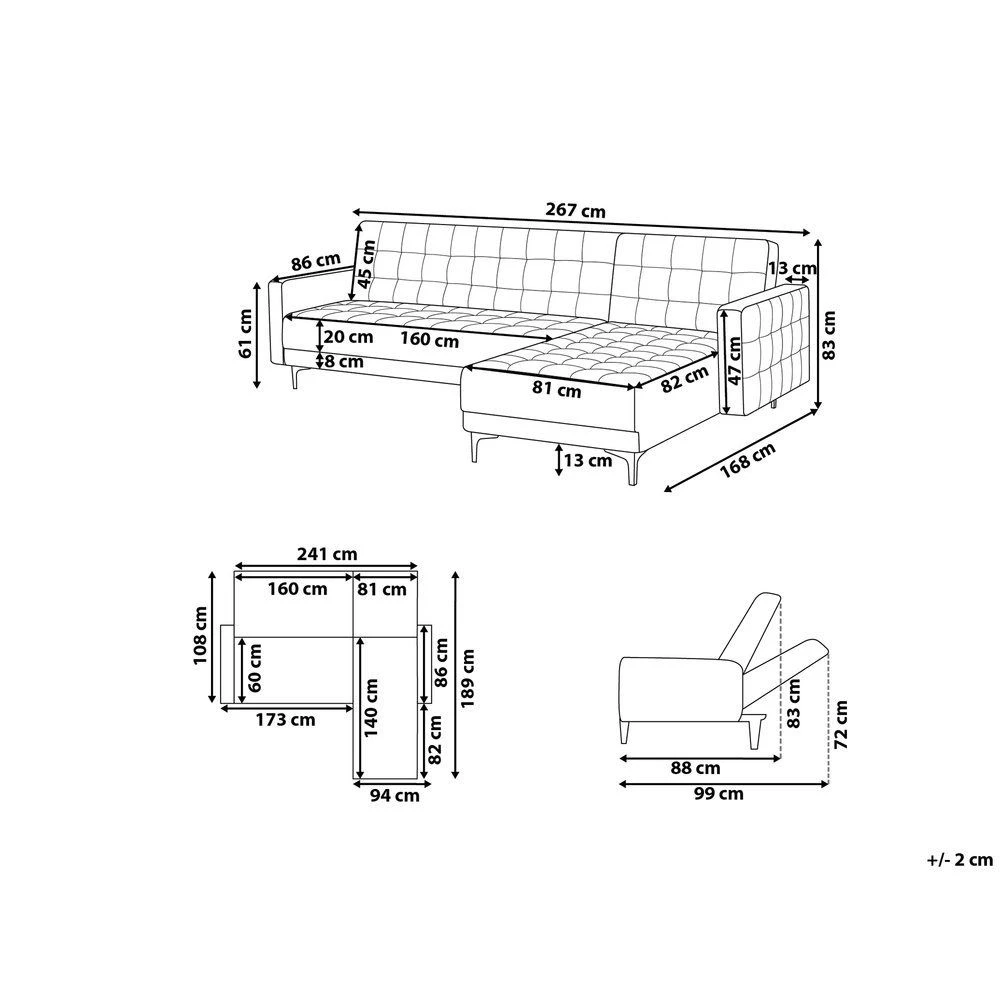 – Caractéristiques: Confort optimal du siège, Extrêmement confortable et agréable, Surface de sommeil épaisse assure le confort optimal, Rembourrage de qualité supérieure, Design moderne, Facilement convertible en un canapé-lit