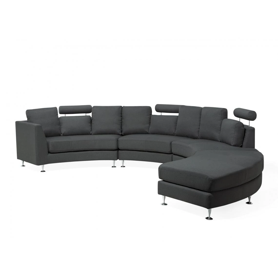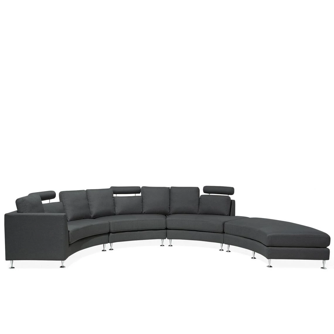 Canapé panoramique design rond en tissu gris foncé avec pieds argent chromé