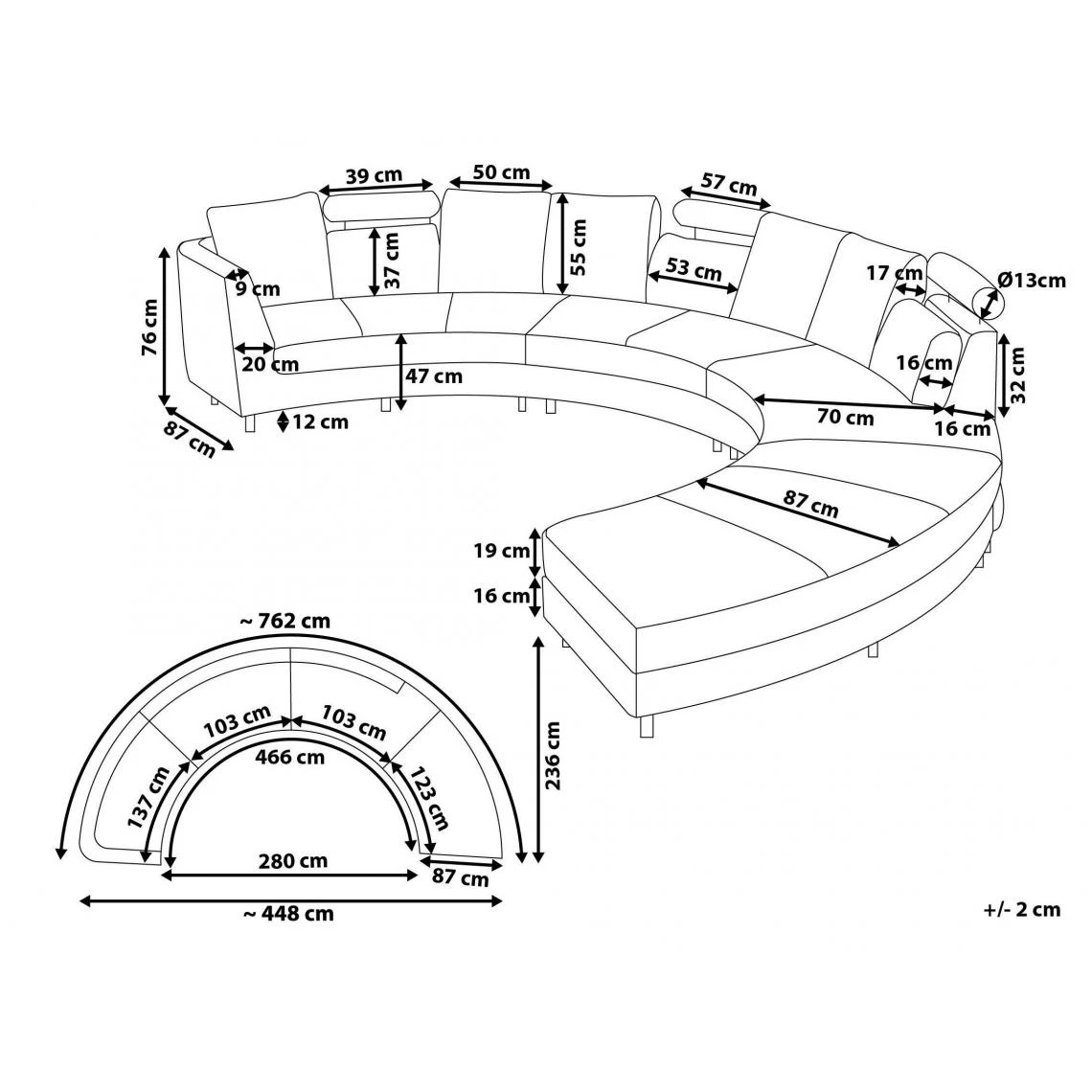 Ce somptueux canapé arrondi en tissu de haute qualité transformera votre salon en un espace de vie convivial et confortable. Grâce à un design sobre et des lignes épurées, ce canapé au look résolument moderne apportera un style contemporain à votre séjour. Ce spacieux sofa de forme circulaire, ultra branchée, offre une espace exceptionnel dédié à la détente et impressionnera tous vos invités. Remarquez les 3 appuis-têtes – un ajout de confort supplémentaire à ne pas négliger. Qui plus est, ce magnifique canapé panoramique demi cercle se compose de modules faciles à assembler, vous pourrez donc créer votre propre combinaison. Offrez un univers de luxe et d’élégance à votre intérieur, grâce à ce modèle unique très haut de gamme.