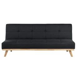 Le canapé c’est le meuble indispensable dans un salon. Légèrement rembourré, il convient à tous les styles de décoration, du moderne au contemporain. Sa forme longue et épurée permet d’accueillir 3 personnes et elle assure un confort optimal pour le maintien du dos. Ce canapé vous apportera tout autant de confort lors de vos nuits gràce à sa fonction convertible qui en fera un lit d’appoint idéal. Les lignes décoratives, couplées avec les boutons sur le dossier lui confèrent une ambiance décontractée. Le revêtement est fabriqué en tissu polyester noir, une couleur noble qui s’harmonisera parfaitement avec votre intérieur.
