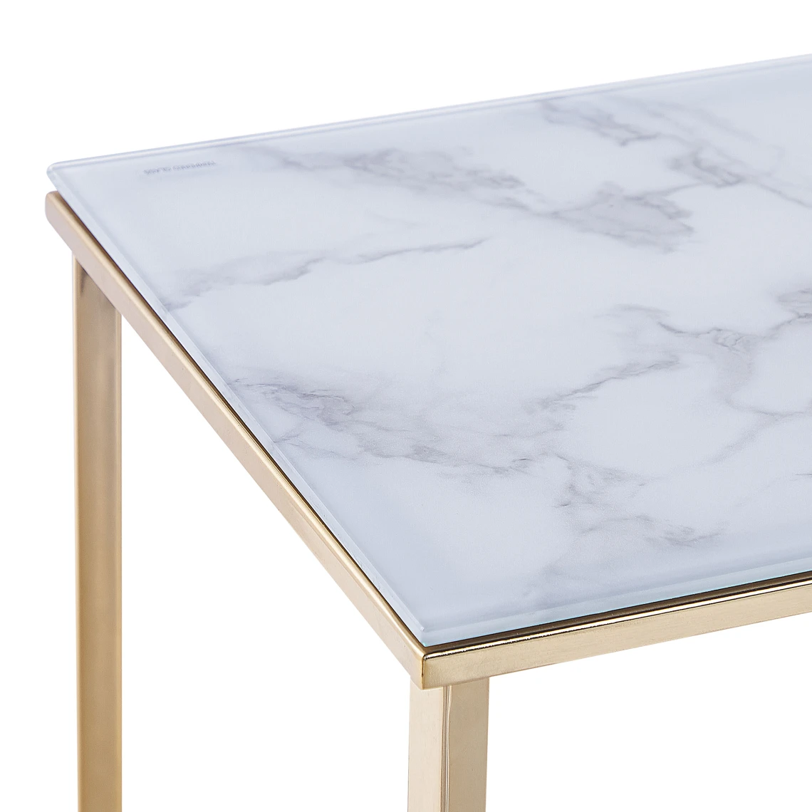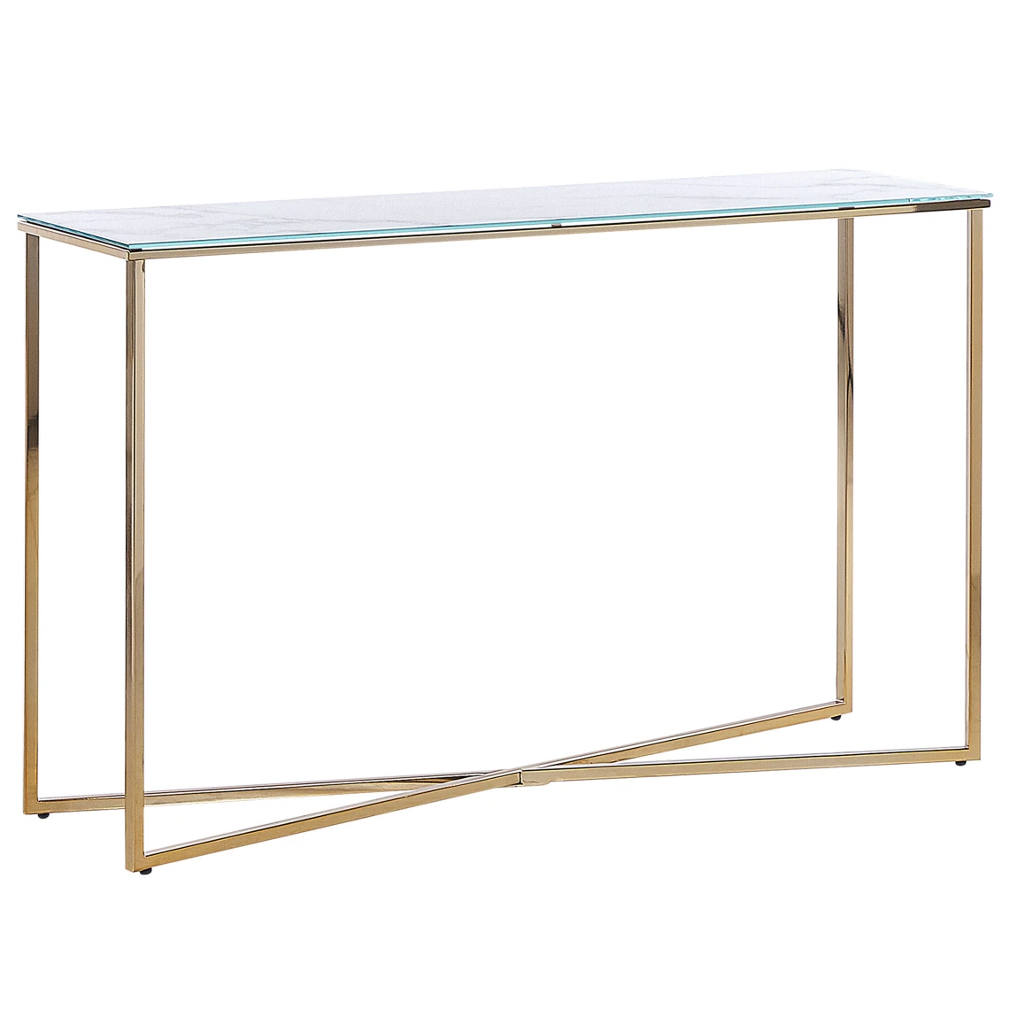 Points forts Beliani Console à plateau en verre effet marbre blanche et dorée ROYSE