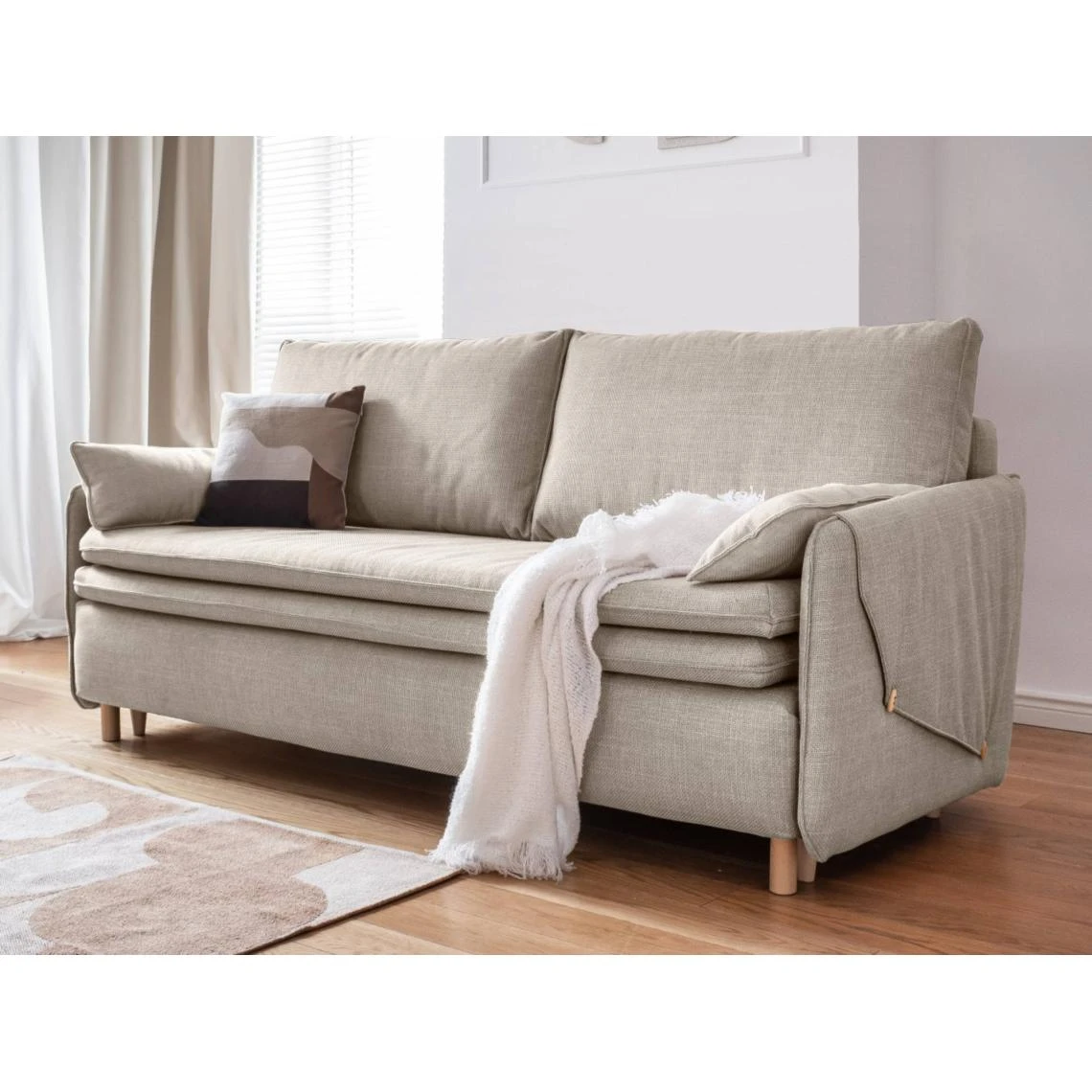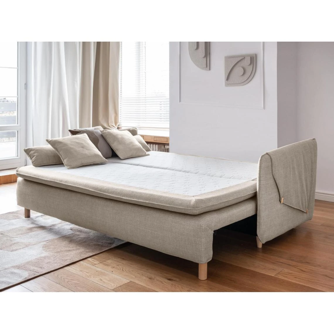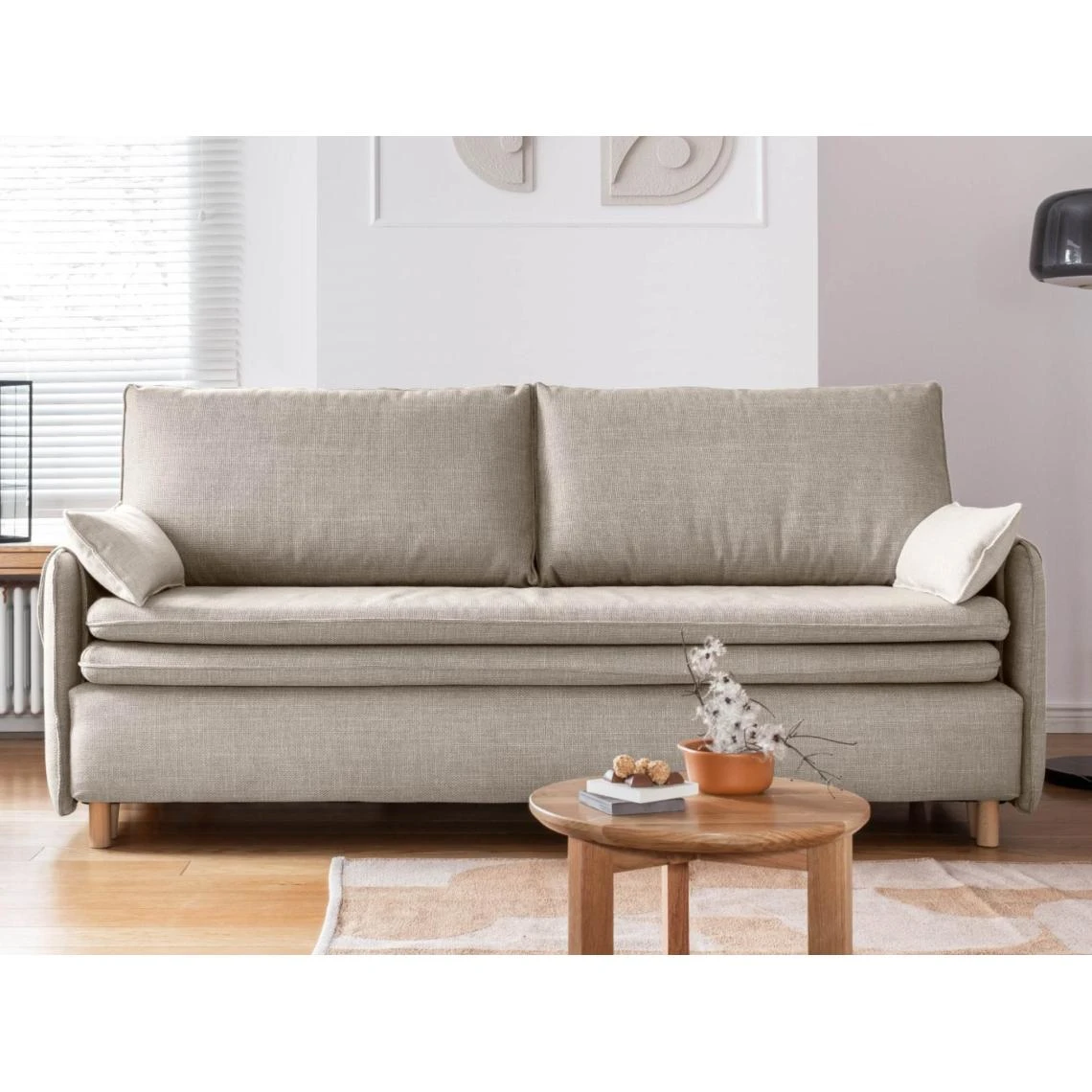 Points forts Bestmobilier Canapé droit convertible 3 places SIMON – Tissu Beige