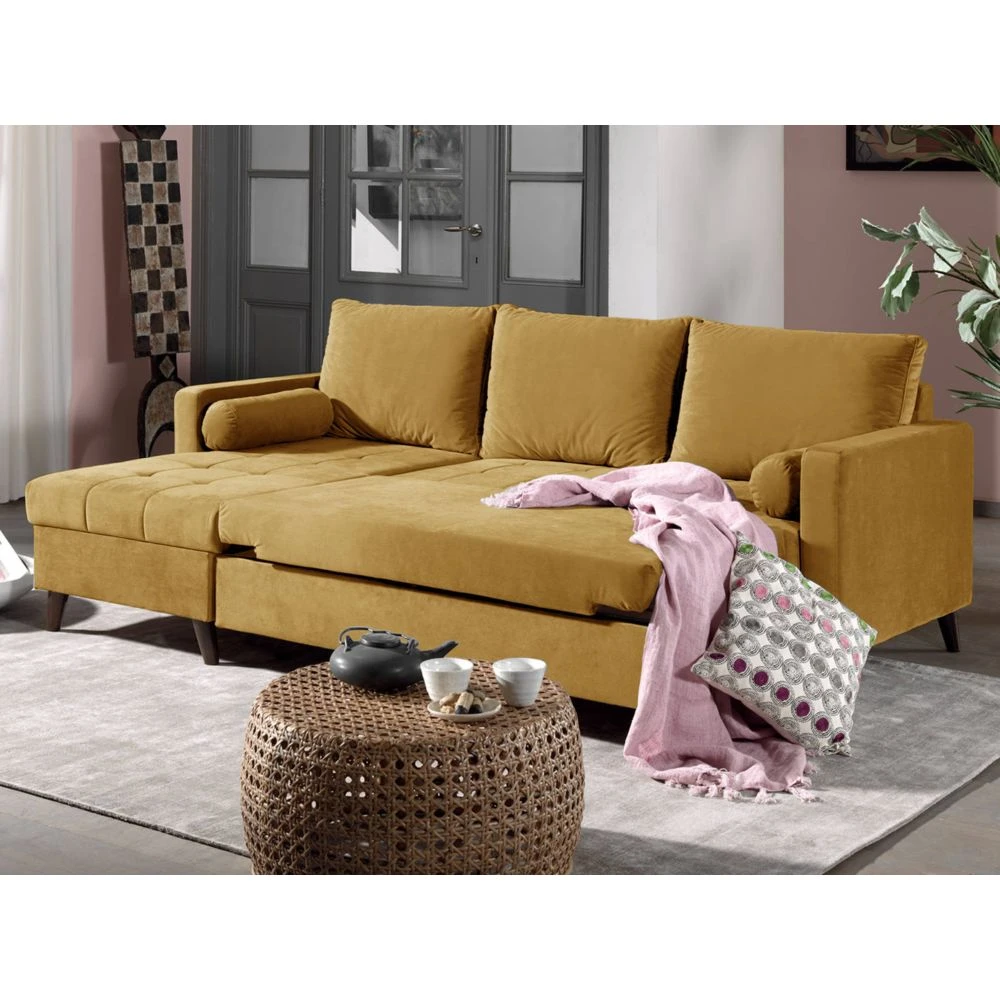Points forts Bestmobilier POLAR – Canapé d’angle réversible convertible – en velours au design scandinave – 4 places Couleur – Jaune