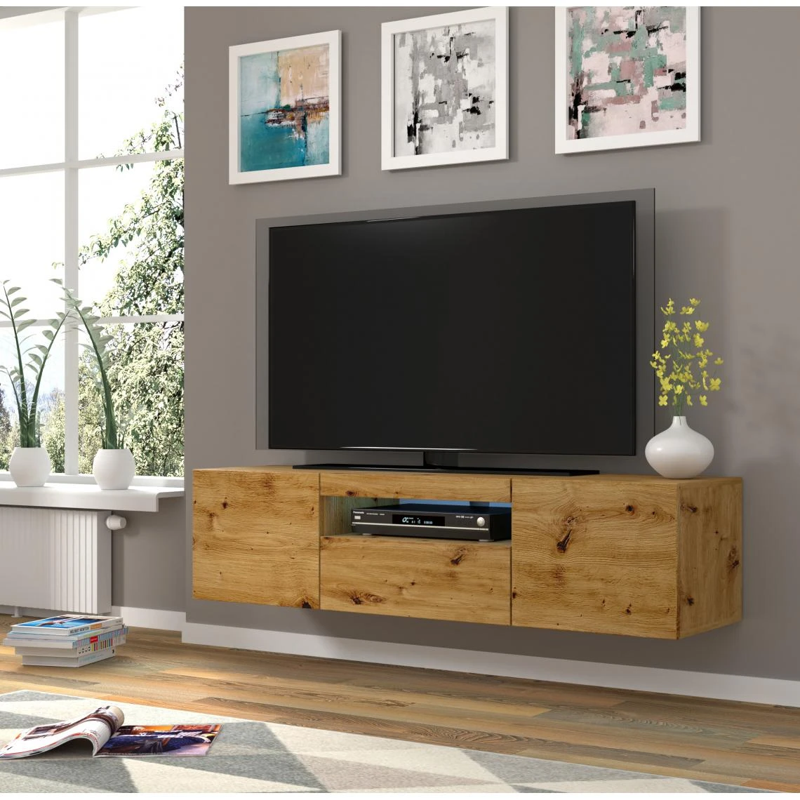 Points forts Bim Furniture Meuble TV bas universel AURA 150 cm à suspendre ou à poser Chêne artisan sans LED