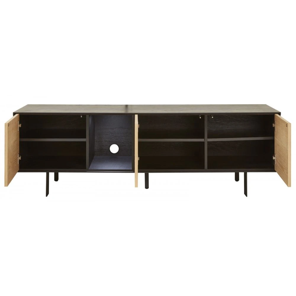 Choisissez ce meuble TV de style industriel pour votre intérieur. Avec ces 3 portes et sa niche vous aurez de la place pour le rangement.