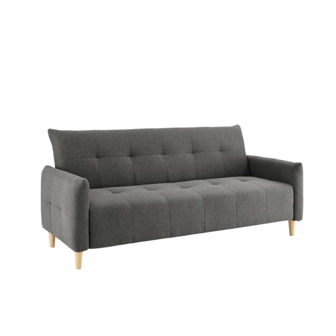 Pieds :En bois Hauteur 14cm . Assise :Une couche de mousse recylcée de densité 50kg/m3 ép.7,5 cm + une couche de mousse de densité 24kg/m3 ép.2,5cm + une couche de fibre polyester . Dossier :Une couche de mousse recylcée de densité 50kg/m3 ép.5,5 cm + une couche de mousse de densité 18kg/m3 ép.2,5cm + une couche de fibre polyester . Garantie :2 ans, pièces . Structure :- . Suspension :Ressort S . Revêtement :Tissu gris anthracite . A monter soi-mêmeOui . Dimensions en cm :L. 201,5 x P. 83 x H. 90 cm . Dimensions couchage en cm :L. 176 x P. 112 x H. 45 cm . Dispo pcs détachées donnée fournisseur :0 An .