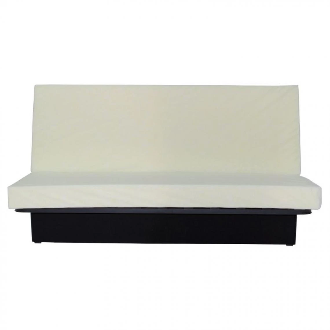 Ouate :polyester 350 g/m². . Tissu :imprimé 100% coton. . Matelas :mousse polyuréthane 20 kg/m3 : couchage occasionnel . Sommier :2×9 lattes en multiplis de bouleau. . Garantie :2 ans , Pièces , Main d’oeuvre , Déplacement . Structure :panneaux de particules et panneaux de fibres de moyenne densité. . Mécanique :clic-clac. . A monter soi-même. . Dimensions en cm :L. 193 – H. 93 – P. 95. . Dimensions couchage en cm :125x188x13. .