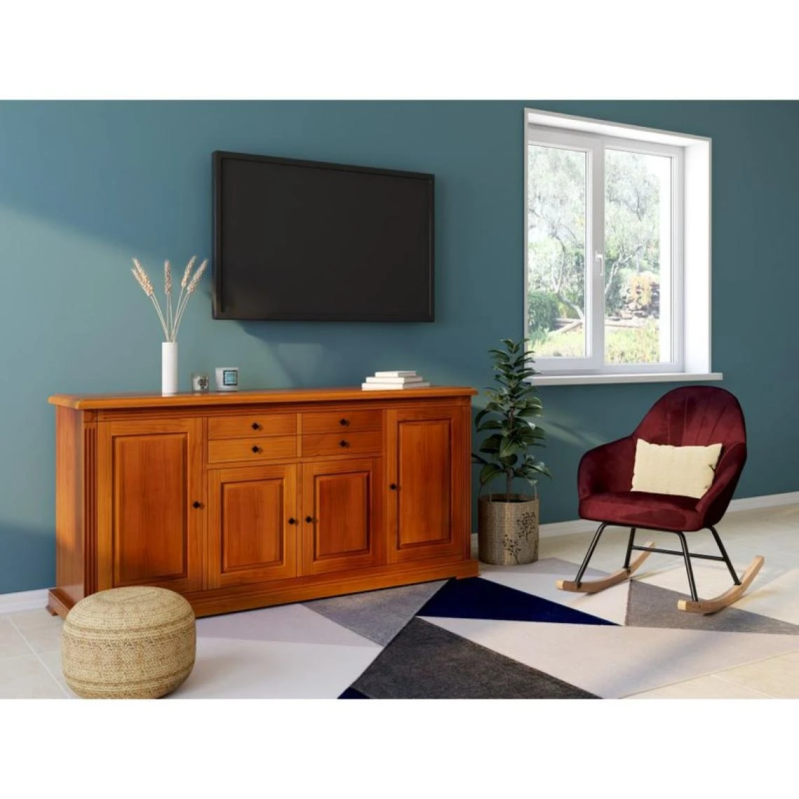 Offrez-vous des moments de détente avec ce fauteuil à bascule BAHIA. Il se dote d’une assise large et confortable de 45 cm de haut et 54 cm de profondeur. Le confort est renforcé par son revêtement en tissu velours doux. Ce fauteuil à bascule vous permettra de vous relaxer grâce à son mouvement de balancier. Conçu pour durer, il possède une structure en acier. Ses pieds en métal se terminent par des patins en caoutchouc, pour ne pas laisser de traces sur le sol. Pour entretenir ce fauteuil à bascule prune, utilisez un produit spécial tissu d’ameublement.