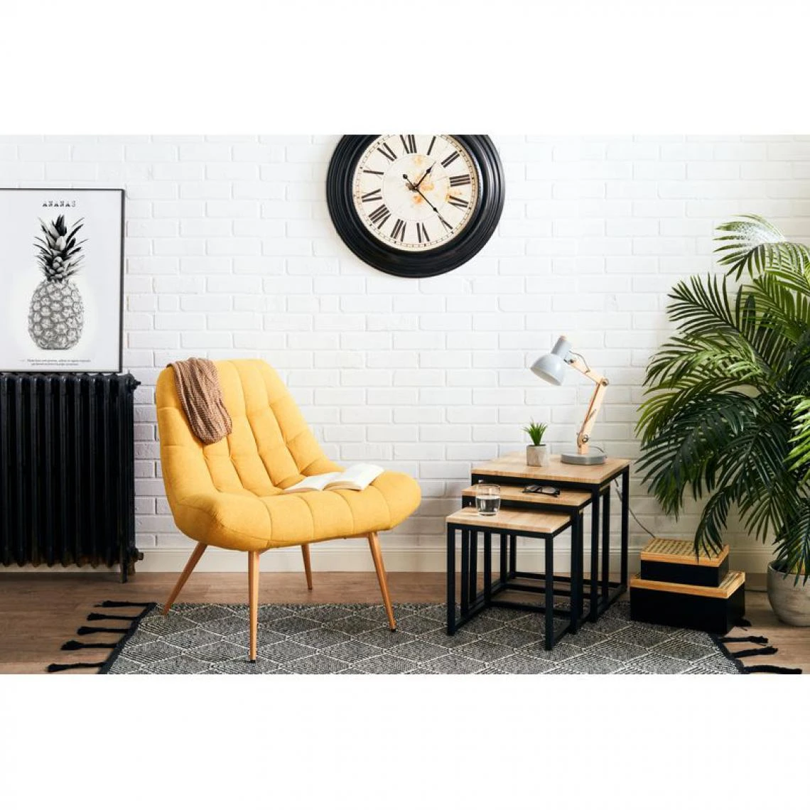 Laissez-vous séduire par le design simple mais efficace du fauteuil BERGAME, qui saura s’intégrer parfaitement dans tous les intérieurs de style rétro ou moderne.. Très confortable, il est muni d’une assise moelleuse et d’un beau dossier capitonné !. Tendance et coloré, vous apprécierez son revêtement en tissu jaune et ses pieds en bois..