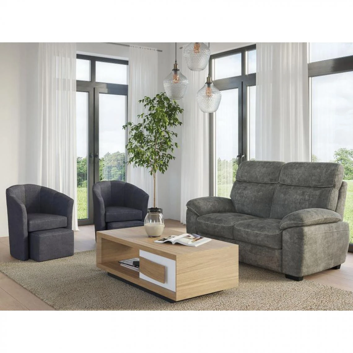 Points forts But Fauteuil cabriolet et pouf CLAYTON tissu Soro gris foncé