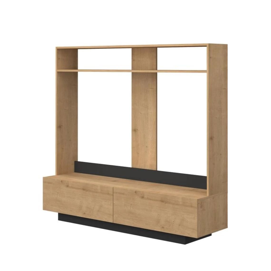 Organisez votre espace TV dans un esprit design et épuré avec le meuble TV CUBE!. Fonctionnel, il bénéficie de nombreux rangements, portes, niches et étagères qui se prêtent aussi bien à votre équipement TV qu’aux livres ou aux objets de décoration.. Le look nature et design de ce mur TV imite avec élégance la teinte du chêne et s’associe de façon harmonieuse à tous les styles d’intérieurs..
