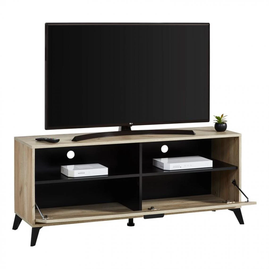 Ce meuble TV industriel possède un plateau adéquat pour un écran TV de 55 pouces. Proposé à un excellent rapport qualité/prix, ce meuble TV de dimensions L. 137,5 x H. 57,5 x P. 40 cm offre des solutions de rangement adaptées au matériel actuel. Vous pourrez disposer vos box TV au niveau supérieur grâce aux passe-fils intégrés, et dissimuler vos accessoires et magazines dans les niches du dessous.