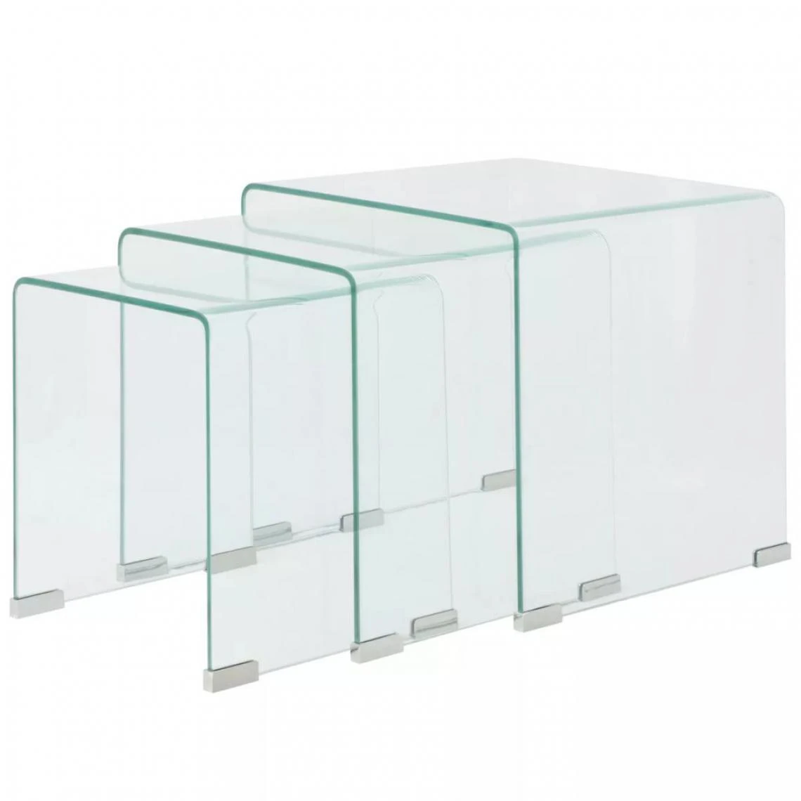 Points forts Chunhelife Ensemble de tables gigognes 3 Pièces Verre trempé Transparent
