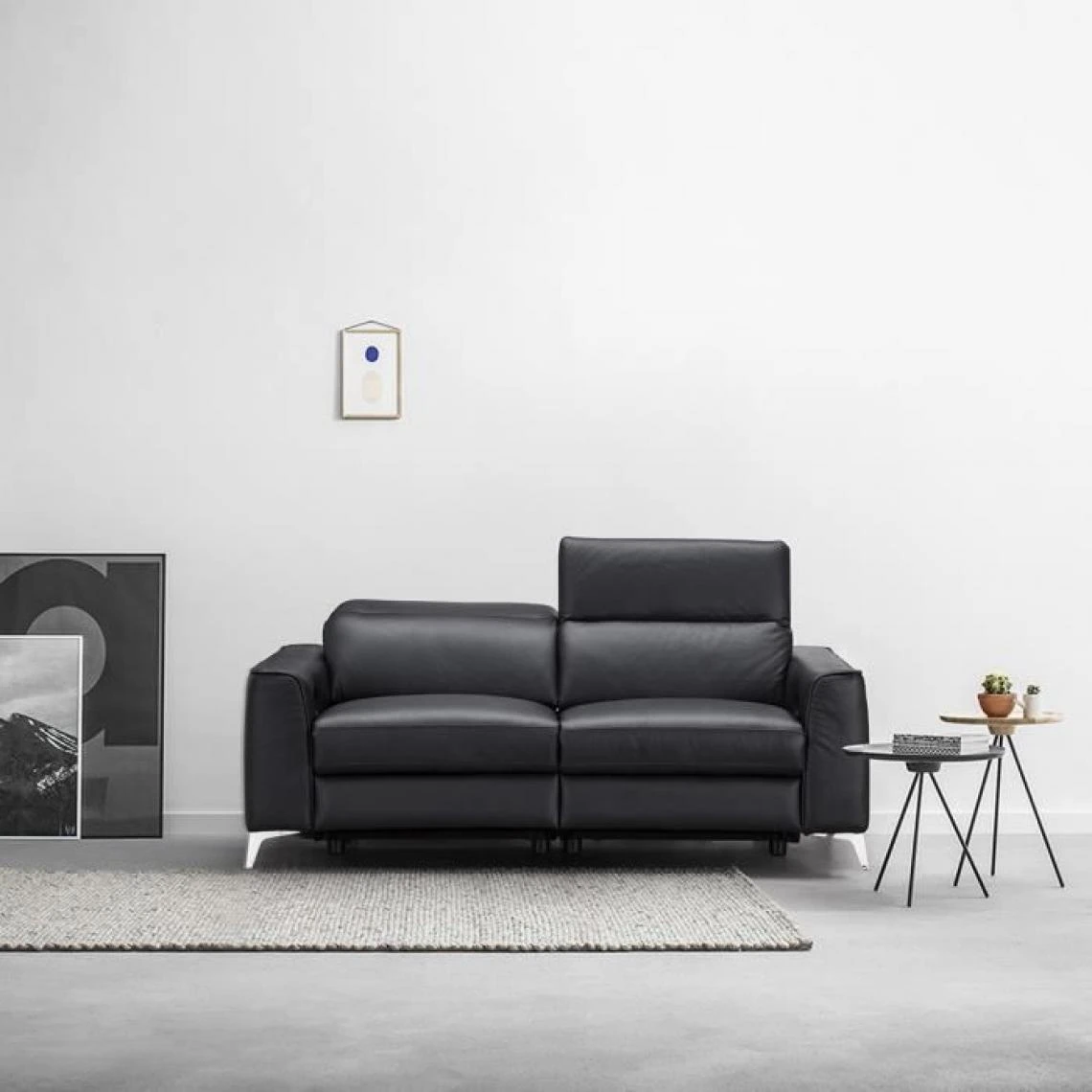 Canapé 2 places relax électriques – Cuir de vachette (épaisseur 0,9 – 1,1 mm) et simili noir – EDISON