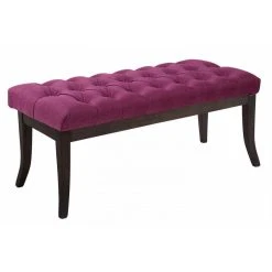 Banc avec assise rembourré capitonné style Cherterfield. Housse en tissu violet (100%polyester) Pieds en bois massif. Dimensions: Largueur: 100 cm Profondeur totale: 38 cm Hauteur totale: 46 cm Poids: 11 kg Livré partiellement assemblé. Nous ne faisons pas d’expédition sur les îles (Corse inclue),Monaco et les TOM/DOM. Décoshop26 BAN10051
