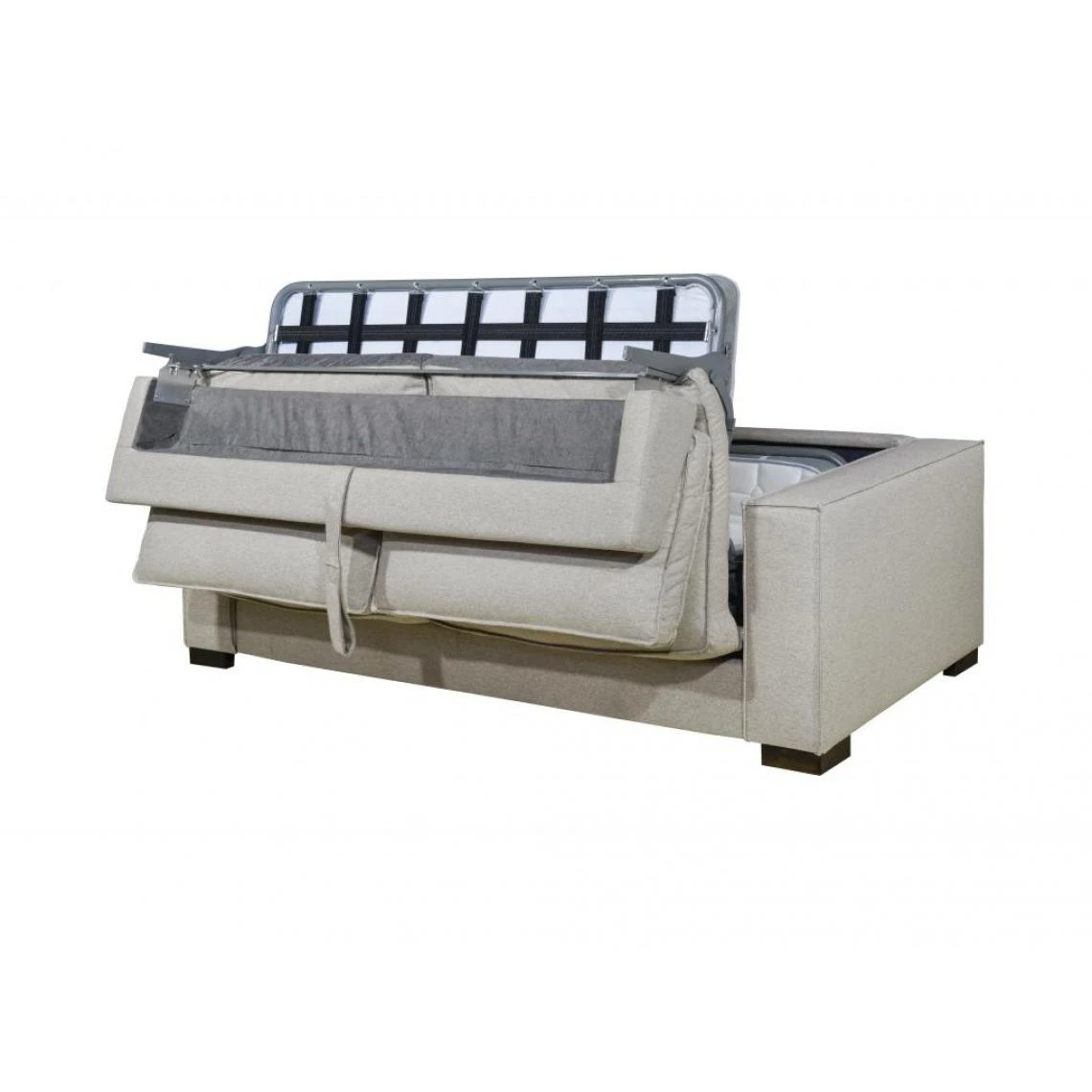 Points forts Dunlopillo Canapé 3 places convertible express en tissu beige – Couchage 140 cm – Matelas DUNLOPILLO 14 cm – DOLORES