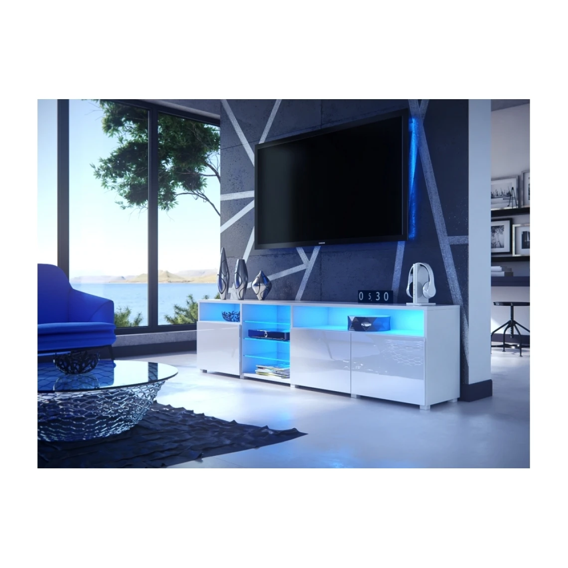 Points forts Dusine MEUBLE TV MASSIMO 200 cm Blanc Mat et portes Blanc Laquées LED RGB