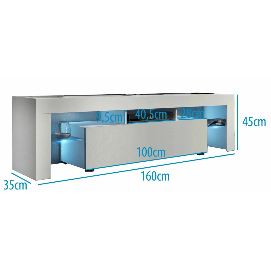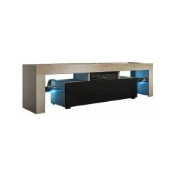 Points forts Dusine Meuble TV SPIDER à LED en Chêne MAT avec porte Noir Laqué 160 cm