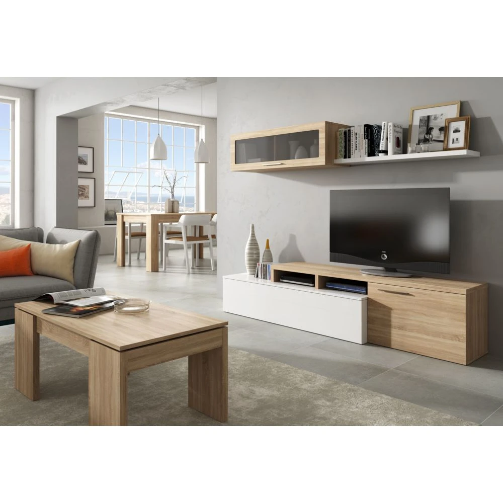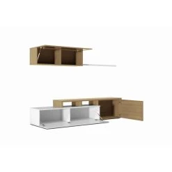 Meuble séjour TV en panneaux de particules mélaminés épaisseur 15mm et 30mm.