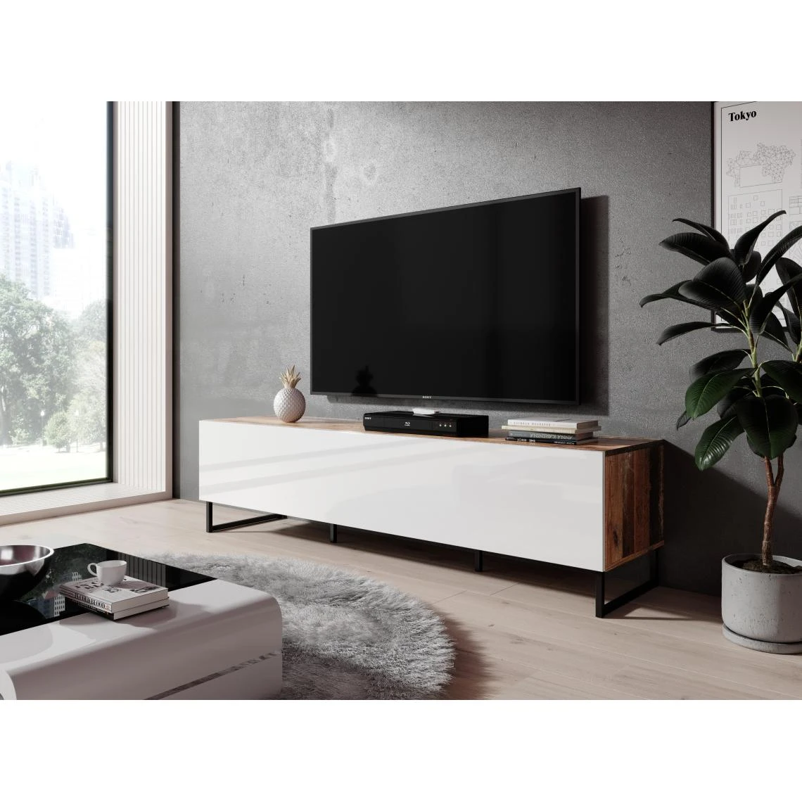 Points forts Furnix FURNIX Meuble tv / banc tv avec pieds en métal Zibo 160 cm style moderne avec compartiments fermés vieux bois mat / blanc brillant