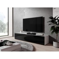 Points forts Furnix Meuble tv debout / suspendu ZIBO 160 cm blanc mat / noir brillant style moderne avec compartiments fermés