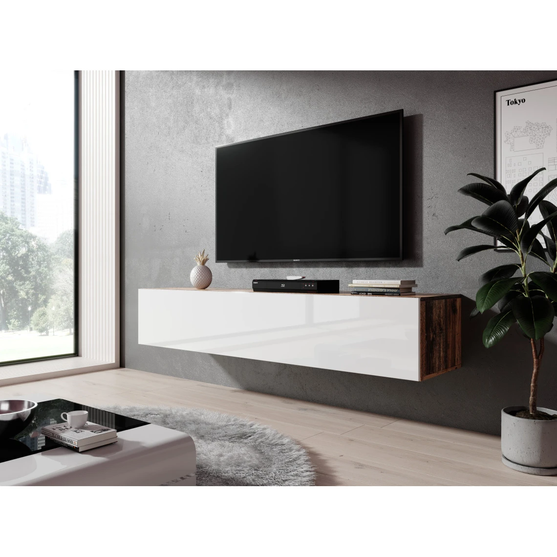 Points forts Furnix Meuble tv / meuble suspendu ZIBO 160 cm vieux bois / blanc style moderne avec compartiments fermés