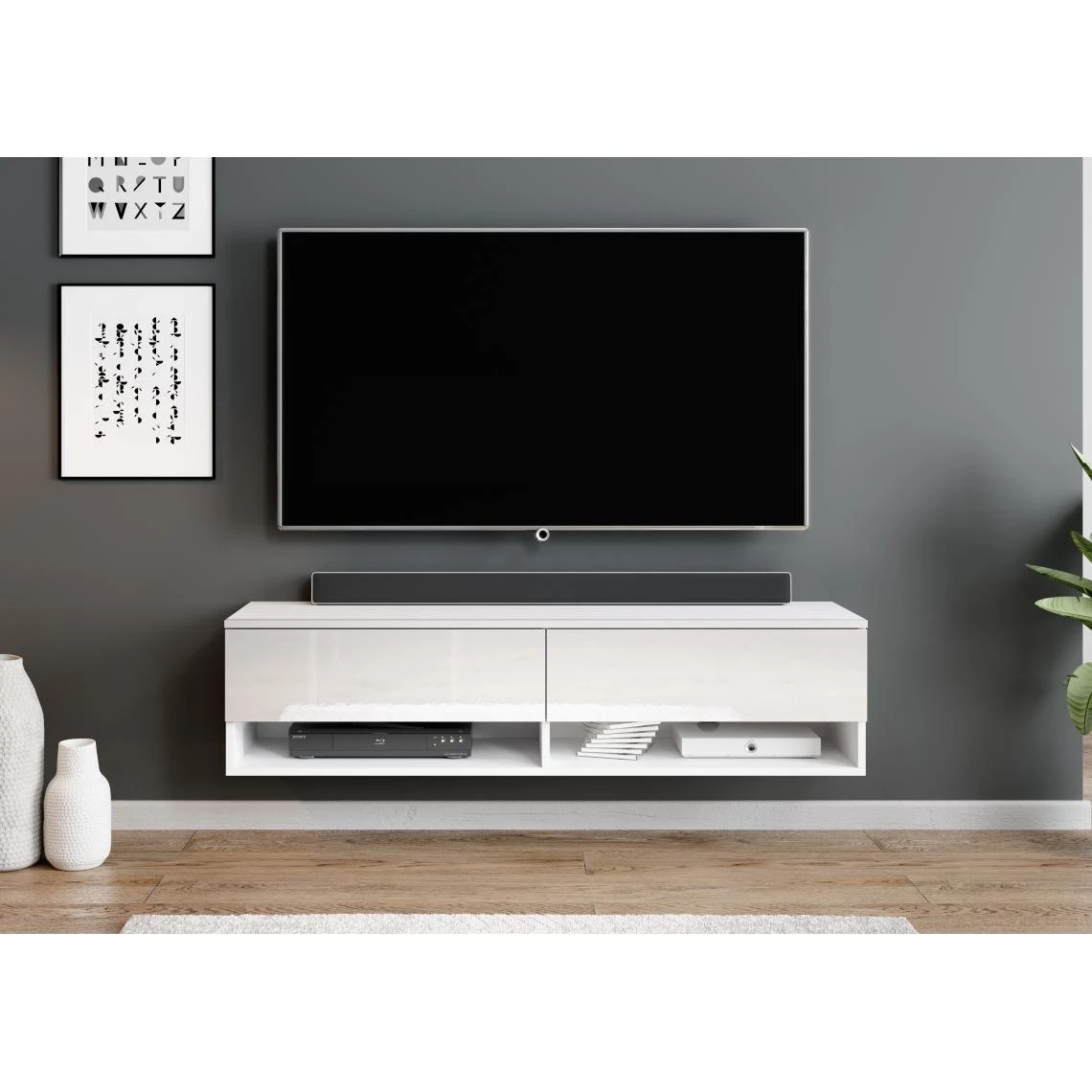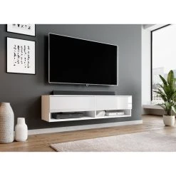Points forts Furnix Furnix Meuble tv / meuble tv suspendu ALYX 140 x 32 x 34 cm style industriel blanc mat / blanc brillant sans LED