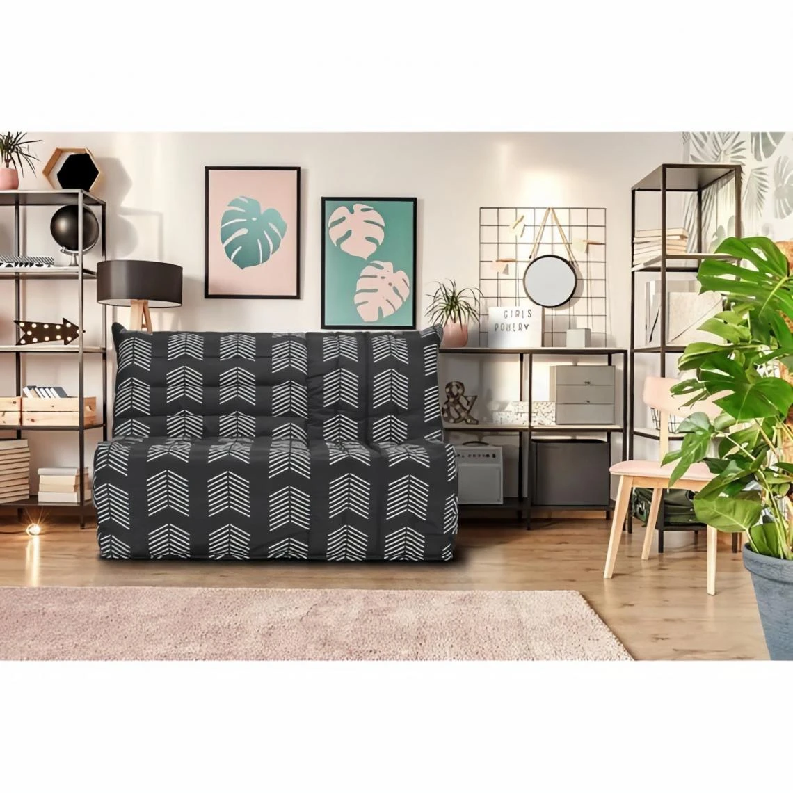 Points forts Gruhier Banquette BZ – Tissu chevrons A111 – Couchage 138 x 188 x 12 cm – Blanc et noir