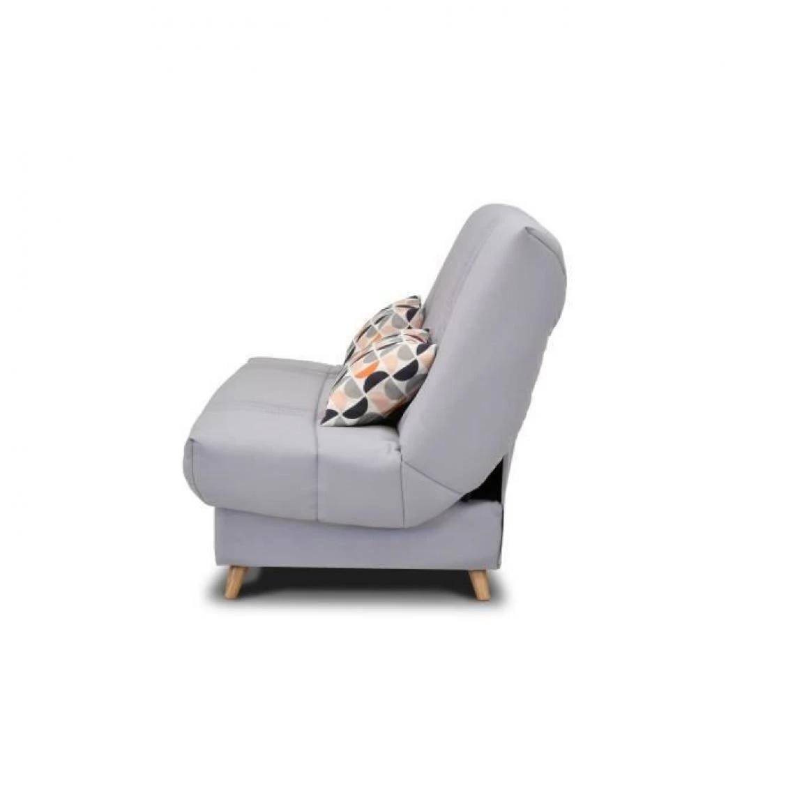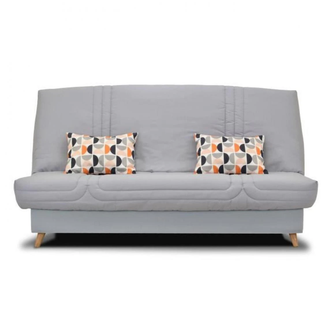 GRUHIER Banquette clic clac BULTEX – Tissu Gris + Coussins déco rétro – L193 x P95 x H101cm – MONA