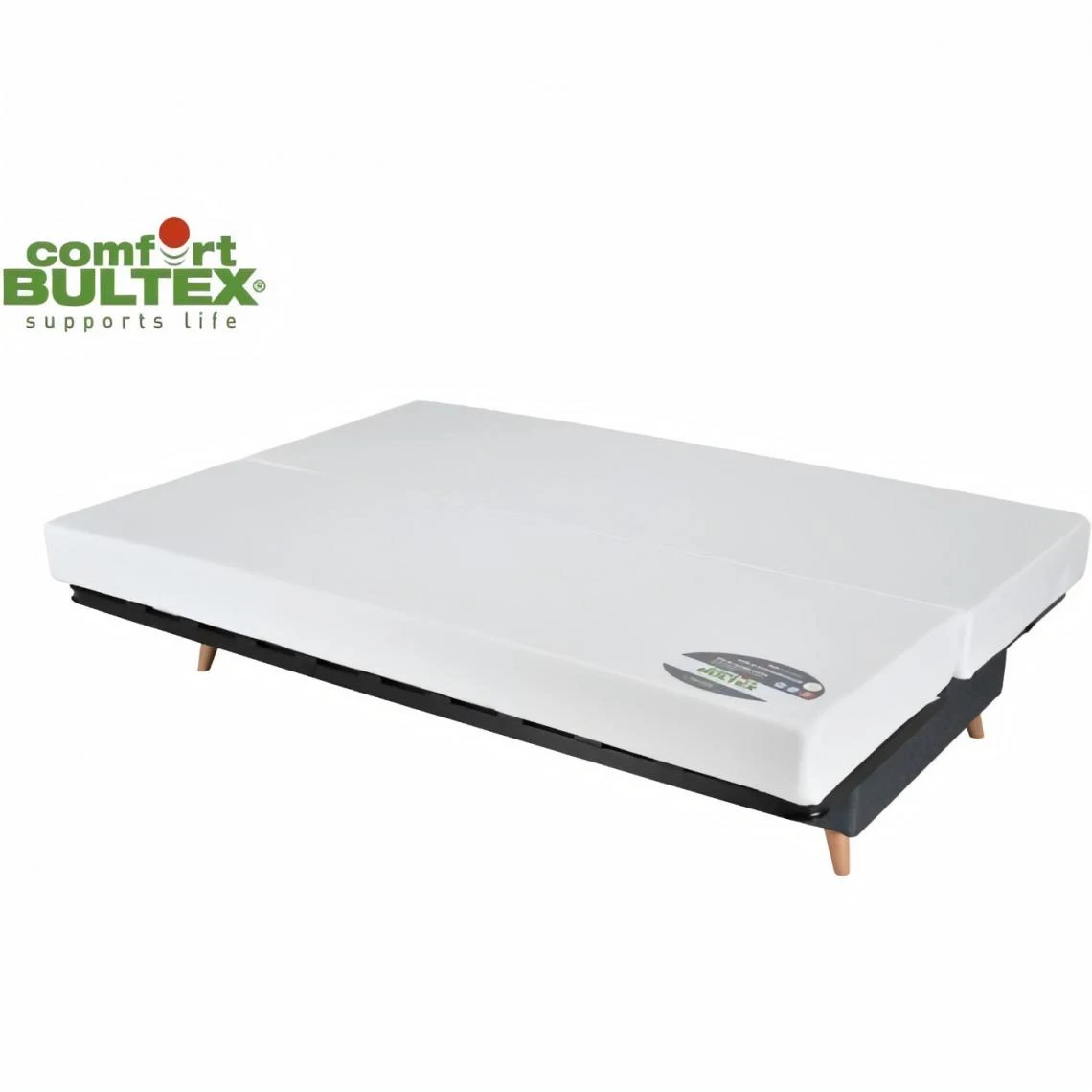 Points forts Gruhier Banquette clic clac BULTEX – Tissu Taupe + Coussins déco jungle – L193 x P95 x H101 cm – MONA