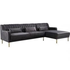 Points forts Habitat Et Jardin Canapé d’angle en velours Oliver – 275 x 161 x 81 cm – 5 places – Gris – Angle droit