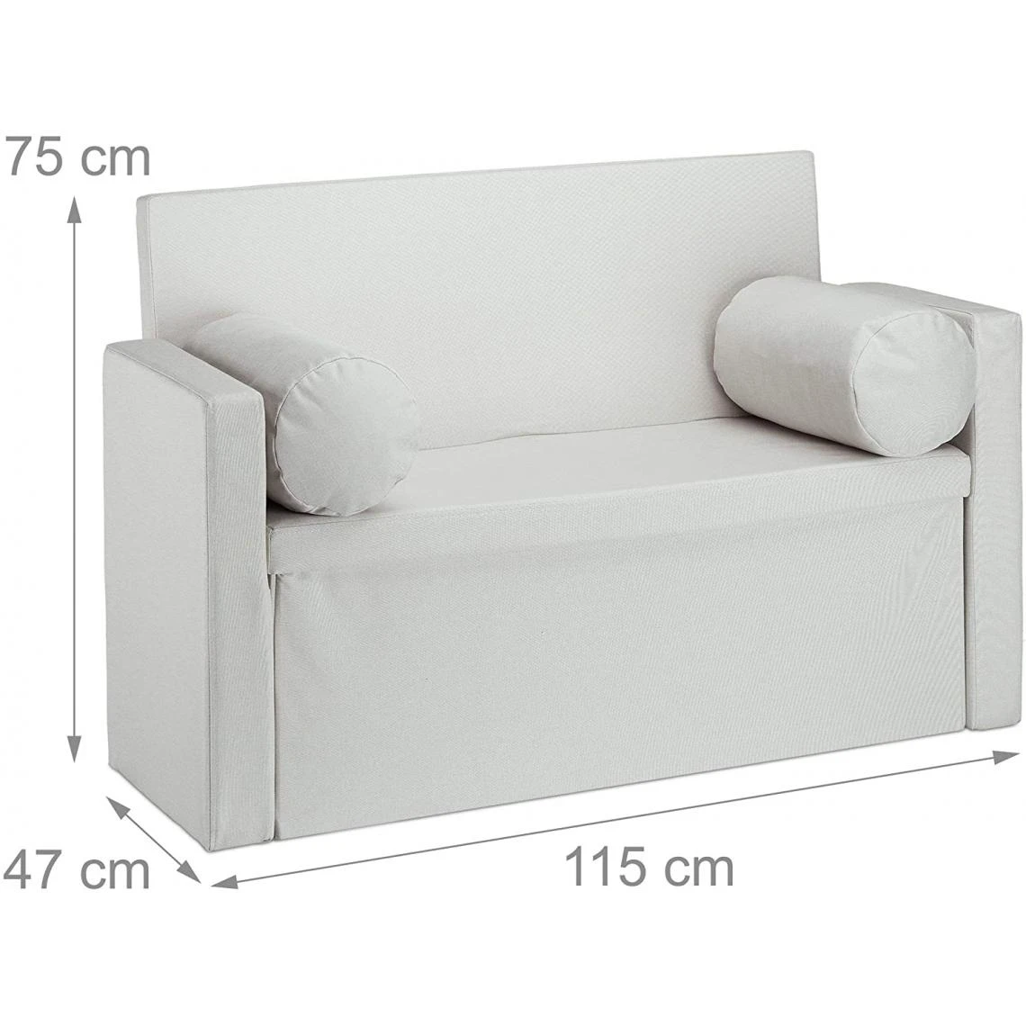 Banc avec dossier Tissu doux et confortable Avec dossier rabattable Accoudoirs et deux coussins en forme de boudin Espace de rangement pour linge de maison, jouets, magazines etc. Pour le couloir, chambre à coucher ou comme canapé pour enfants Canapé design chic Montage rapide Contenu 1x Banquette avec dossier 2 x Coussins polochon notice en allemand sans objets de décoration notice en anglais sans outils Grand banquette de rangement pliable Dimensions totales HxlxP: 75 x 115 x 47 cm Dimensions compartiment intérieur HxlxP: 34 x 97 x 34 cm Coussin H x D: 39 x 20 cm Dimensions du dossier HxlxP: 38 x 98 x 5,5 cm Accoudoirs HxlxP: 16,5 x 7,5 x 37,5 cm Poids: 19 kg Tissu de lin en coton, panneaux MDF Avec une capacité d’environ 112 litres Capacité de charge : 300 kg
