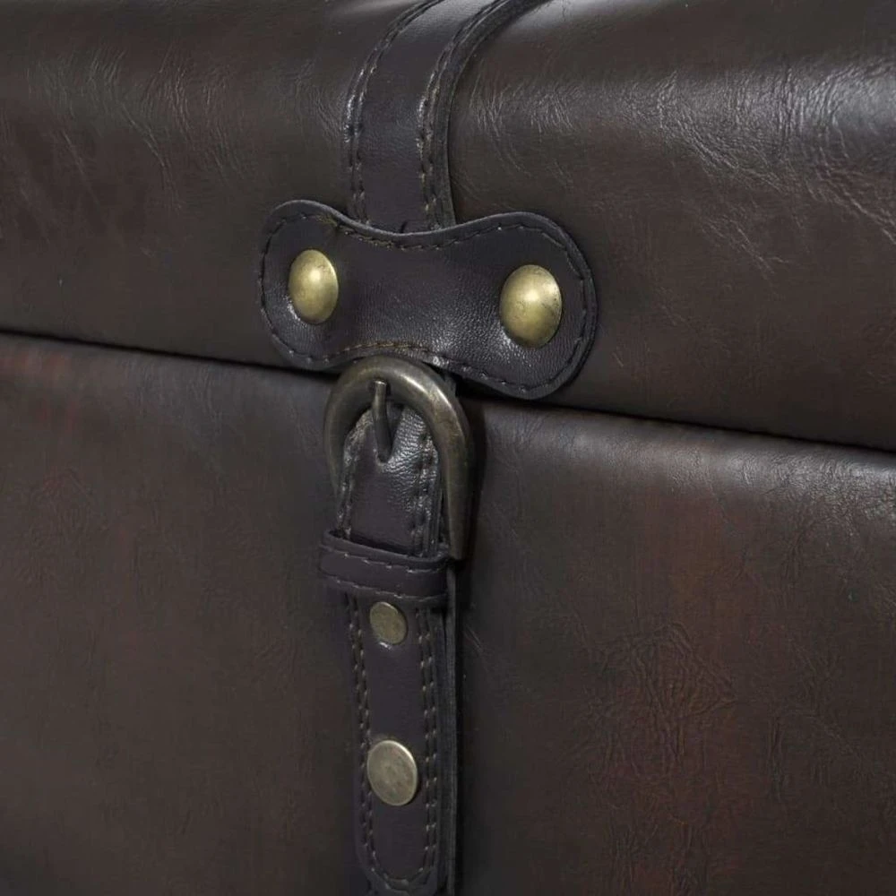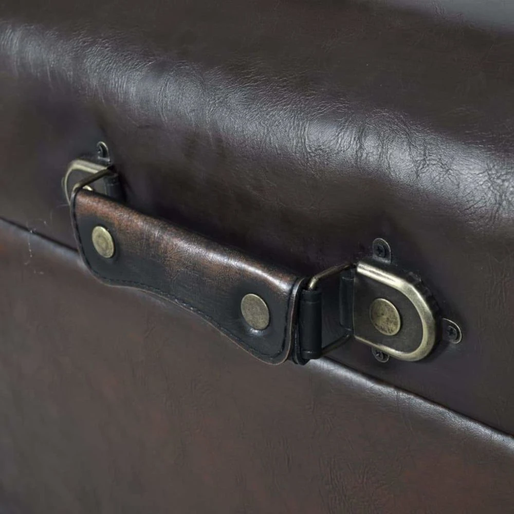 Ce banc de rangement contient un long banc de rangement et 2 poufs. Doté d’un style élégant avec une finition riche en marron foncé, il est le choix idéal pour compléter votre décoration intérieure. Le banc, ainsi que les 2 poufs, ont un cadre en MDF durable recouvert de simili cuir de haute qualité et facile à nettoyer. Le dessus capitonné et le rembourrage moelleux vous apporteront sûrement un confort optimal. Dans le même temps, le meuble fournit suffisamment d’espace en dessous pour stocker tout type d’articles. L’espace de rangement intérieur caché le rend fonctionnel sans nuire à son aspect élégant. Les poignées attachées sur le banc et les poufs garantissent un confort et une meilleure adhérence, tandis que les boucles et les trous de serrure permettent de verrouiller l’ensemble de banc pour plus de sécurité. Couleur : marron Taille du banc : 112 x 36 x 42,5 cm (L x l x H) Taille du pouf : 43 x 31 x 37 cm (L x l x H) Poignées pour une meilleure adhérence Boucles et trous de serrure pour lui donner l’aspect antique Matériel: Polyuréthane: 100%