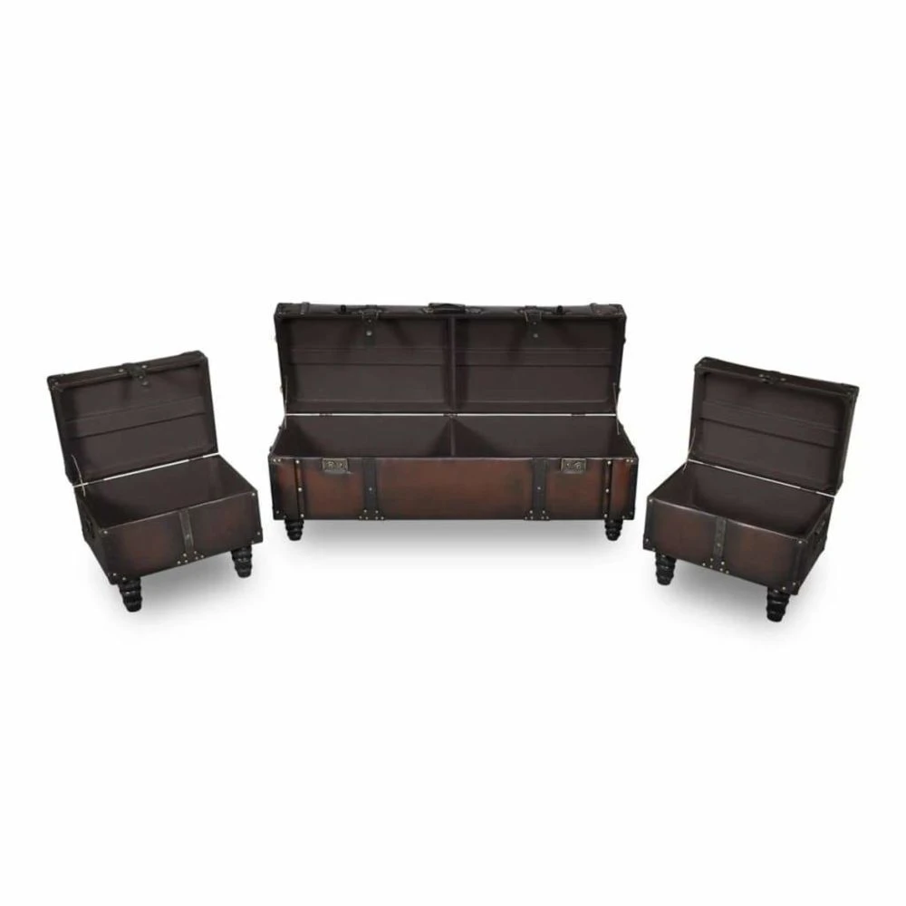 Points forts Helloshop26 Banquette pouf tabouret meuble banc de rangement 3 pcs marron 3002176