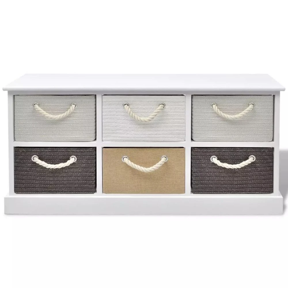 Ajoutez une touche de charme rustique à votre maison avec ce banc de rangement simple mais élégant ! Il peut être utilisé dans l’entrée, le salon ou la chambre à coucher. Cette armoire est dotée de 6 tiroirs qui fournissent amplement d’espace pour garder des petits articles rangés et à portée de main. Les tiroirs avec poignée à cordon ajoutent du style rustique. Les tiroirs sont échangeables. Le banc de rangement peut être utilisé comme banc de salon, banc d’entrée, armoire à tiroir, armoire de salon, armoire de rangement, etc. Matériaux : bois de Paulownia + MDF Dimensions totales : 95 x 28 x 47 cm (L x L x H) Dimensions du tiroir : 27 x 22 x 17 cm (L x P x H) 6 tiroirs avec poignée à cordon Peut être utilisé comme banc de salon, banc d’entrée, armoire à tiroir, armoire d’entrée, armoire de rangement, etc.
