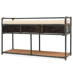 Ce banc de rangement sera un accessoire saisissant pour votre chambre à coucher ou salon. Ce banc robuste et durable est fait d’acier et de bois solide. Il peut avoir quelques imperfections qui ne sont pas intentionnellement faites mais ajoutent néanmoins à l’aspect antique et au charme industriel du banc. Les 3 tiroirs et l’étagère inférieure offrent un espace de rangement suffisant pour garder une grande variété d’articles. Le coussin ajoute au confort d’assise du banc. L’assemblage est facile. Matériau : acier + bois de sapin solide + MDF Matériau du coussin : tissu Dimensions : 107,5 x 34,5 x 59 cm (L x l x H) Avec 3 tiroirs et 1 étagère inférieure Assemblage facile Matériel: Coton: 15%, Polyester: 85%
