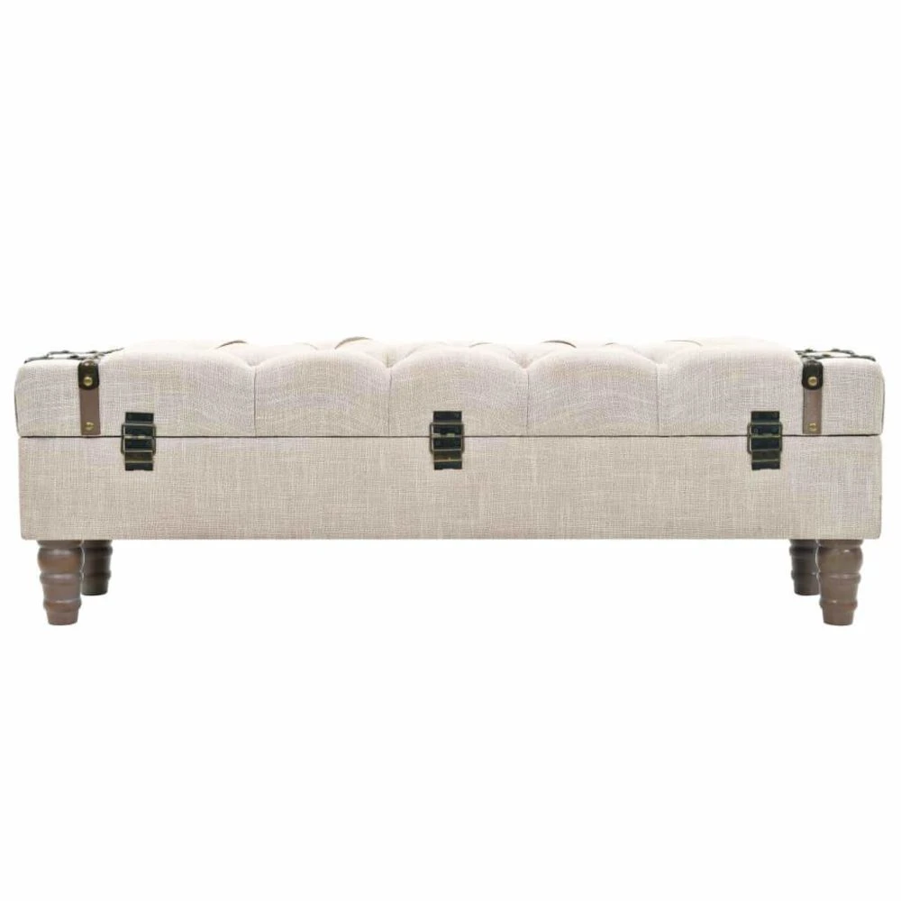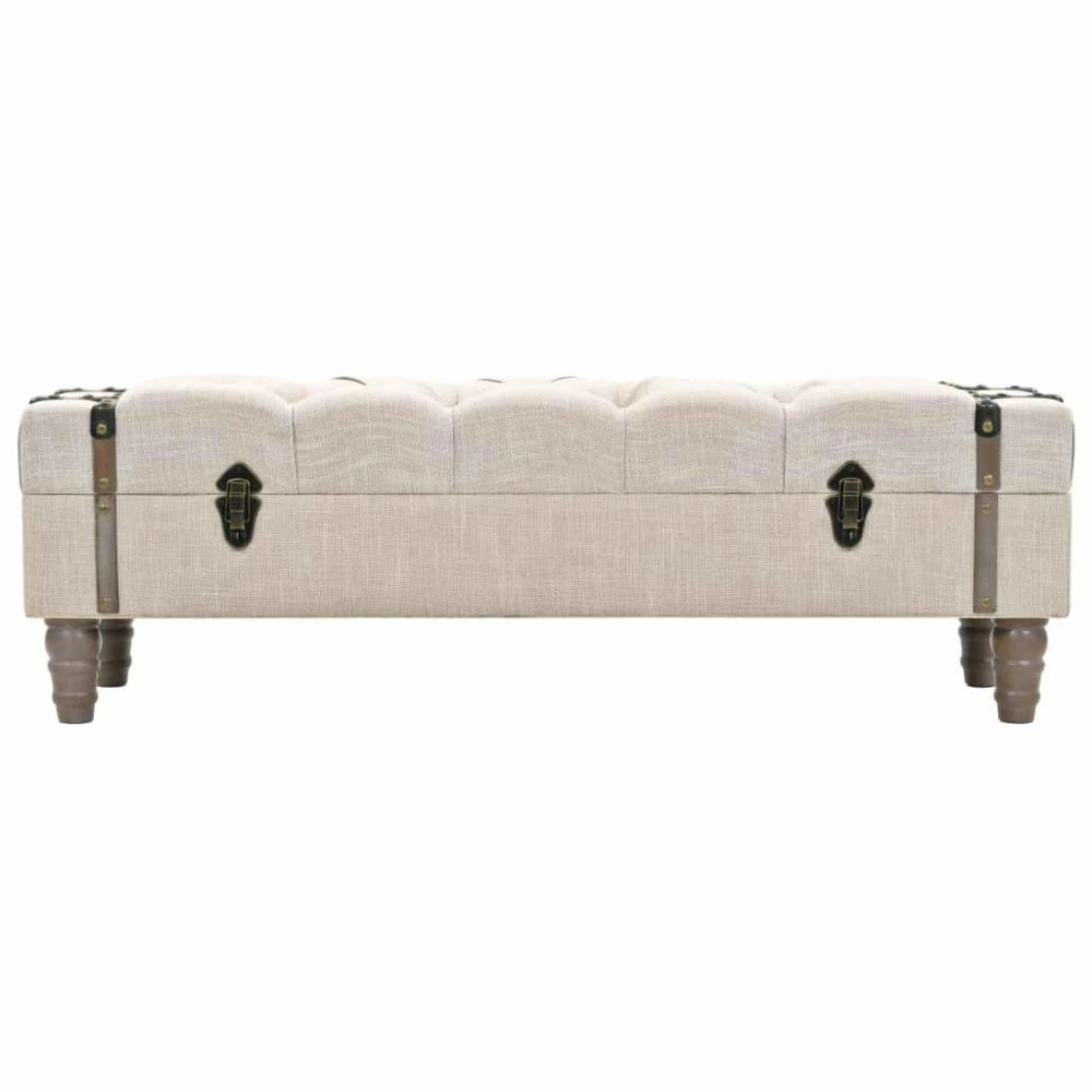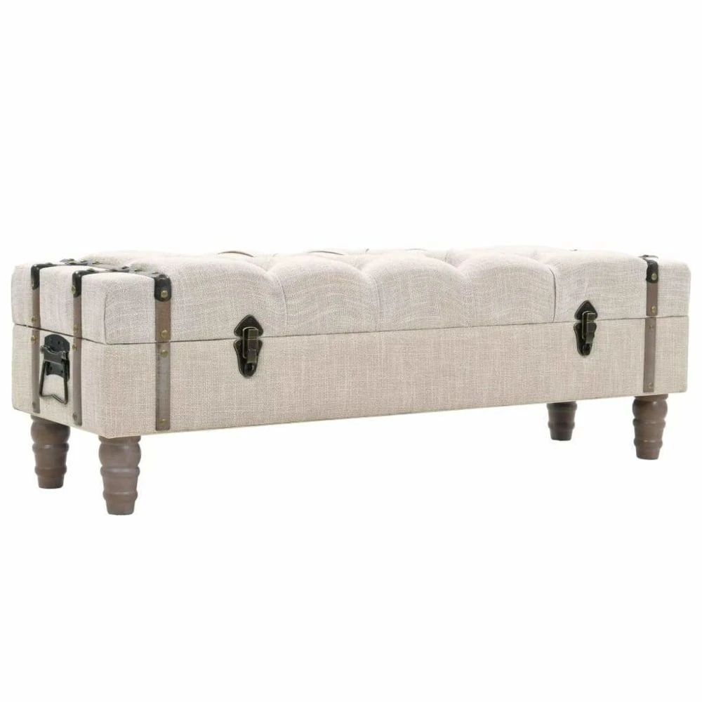 Ajoutez une touche vintage à votre décoration intérieure avec notre banc de rangement. La boîte de rangement est en bois de sapin massif. L’assise est rembourrée et rembourrée, rembourrée dans un tissu moderne, avec de solides pieds en acier. Il y a suffisamment d’espace pour garder une multitude d’objets différents hors de la vue et à portée de main. Grâce à sa poignée durable, le banc sous forme de coffre peut également être facilement déplacé et placé dans n’importe quelle pièce. L’assemblage de cet article est facile. Couleur : blanc cassé Matériau : Bois de sapin + panneau d’aggloméré + tissu + acier Dimensions : 111 x 34 x 37 cm (L x l x H) Avec assise rembourrée et tapissée Facile à assembler Matériel: Polyester: 100%