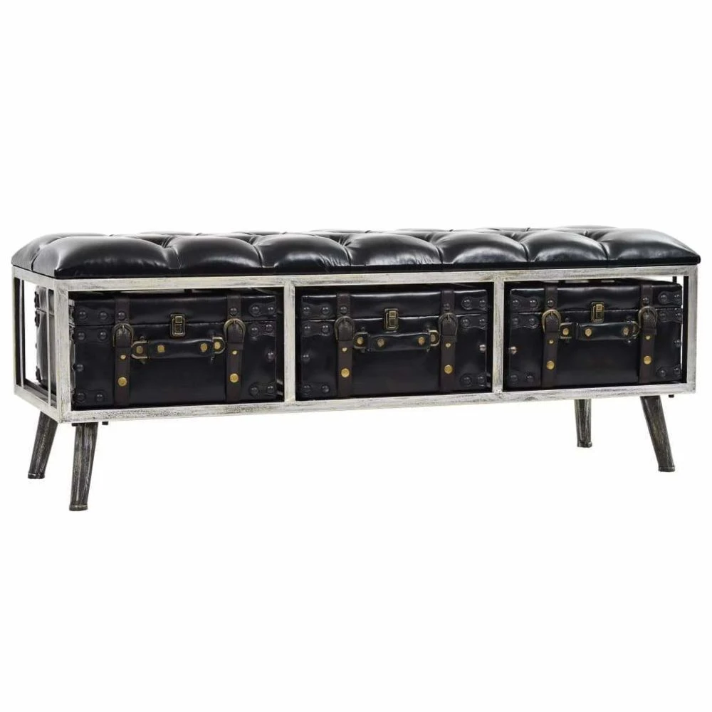 Ce banc unique avec 3 tiroirs de rangement en forme de valises ajoutera une touche d’élégance à votre décor avec son design industriel. Il peut également être utilisé comme pouf ou boîte de rangement. Le banc confortable est en MDF et l’assise rembourrée est tapissée en cuir synthétique. Il a suffisamment d’espace pour garder une foule d’objets différents hors de la vue et à portée de la main. Ses pieds robustes en acier ajoutent à son charme rustique. L’assemblage de cet article est facile. Couleur : noir Matériau : MDF + cuir artificiel + acier Dimensions : 120 x 41 x 46,5 cm (L x l x H) Dimensions de la valise : 37,5 x 35 x 18 cm (L x l x H) Avec assise rembourrée et tapissée Épaisseur du MDF : 1 cm Avec 3 tiroirs à valises Facile à assembler Matériel: Coton: 20%, Polyester: 50%, Polyuréthane: 30%