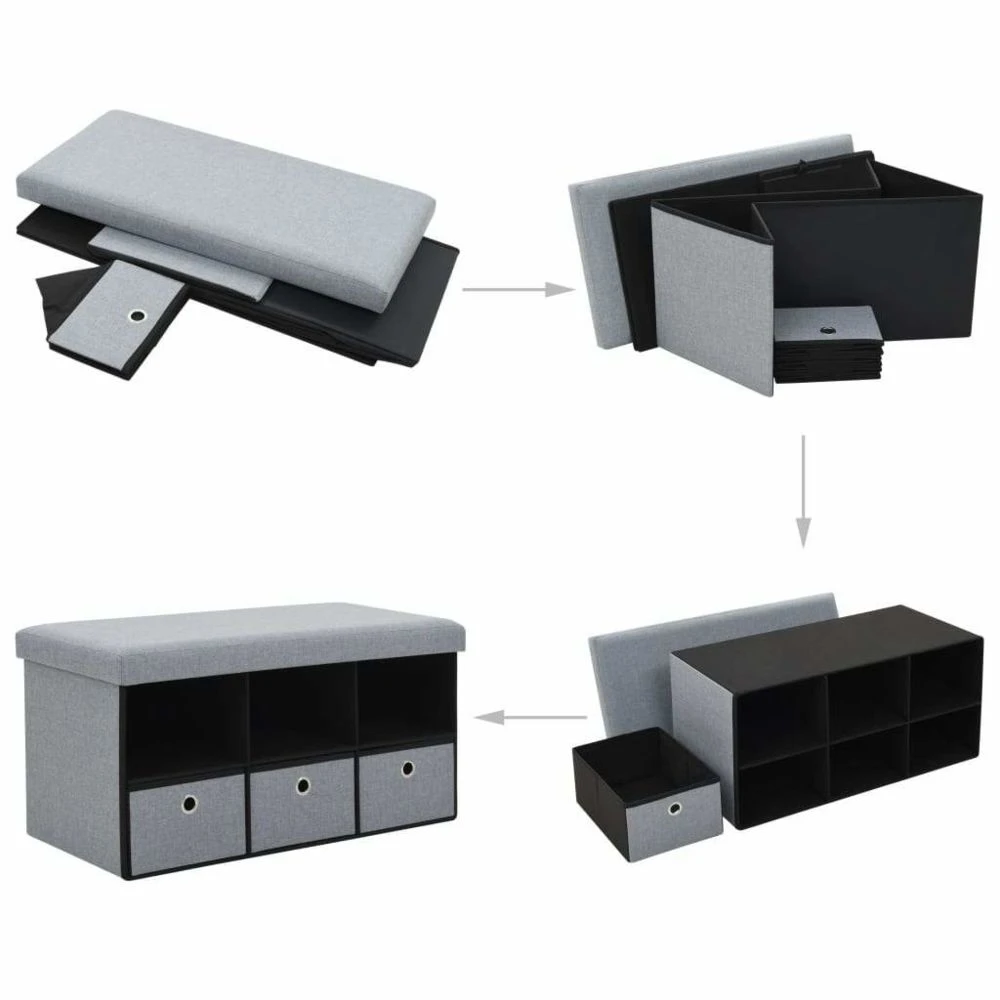 Points forts Helloshop26 Banquette pouf tabouret meuble banc de rangement pliable faux lin 76 cm gris clair 3002155