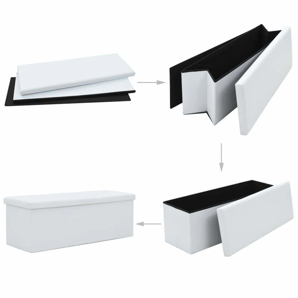 Points forts Helloshop26 Banquette pouf tabouret meuble banc de rangement pliable similicuir 110 cm blanc 3002073