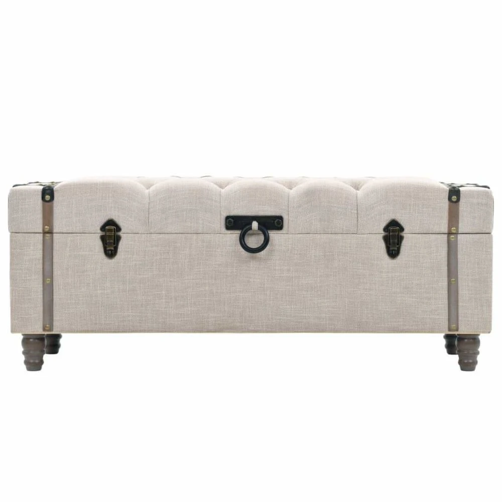 Ajoutez une touche vintage à votre décoration intérieure avec notre ensemble de 3 bancs de rangement. Les boîtes de rangement sont en bois de sapin massif. Ells disposent de sièges rembourrés qui sont tapissés avec un tissu moderne et ont des pieds robustes en acier. Il y a suffisamment d’espace pour garder une foule d’objets différents hors de la vue mais à portée de main. Si nécessaire, les 2 petits poufs peuvent être rangés dans la plus grande boîte. Grâce à leurs poignées durables, les bancs sous forme de coffre peuvent également être facilement déplacés et placés dans n’importe quelle pièce. La livraison comprend 3 bancs de rangement. L’assemblage de cet article est facile. Couleur : blanc cassé Matériau : Bois de sapin + panneau d’aggloméré + tissu + acier Dimensions du plus grand banc : 112 x 37 x 45 cm (L x l x H) Dimensions du plus petit banc : 43,5 x 31 x 37 cm (L x l x H) Avec assise rembourrée et tapissée Facile à assembler La livraison comprend 3 bancs de rangement Matériel: Polyester: 100%