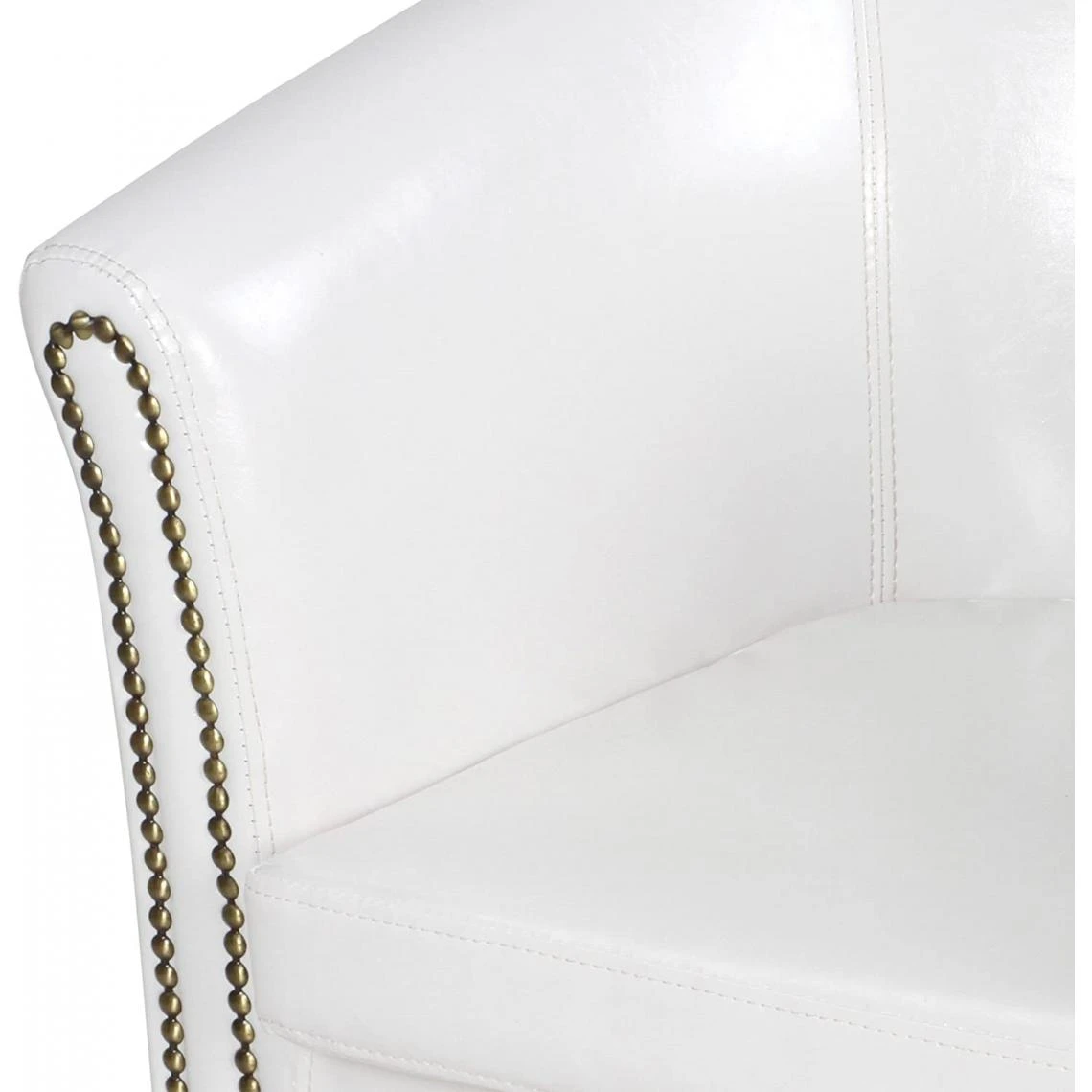 Points forts Helloshop26 Fauteuil chesterfield avec repose pied en simili cuir avec éléments décoratifs en cuivre chaise cabriolet tabouret pouf meuble de salon blanc 01_0000101