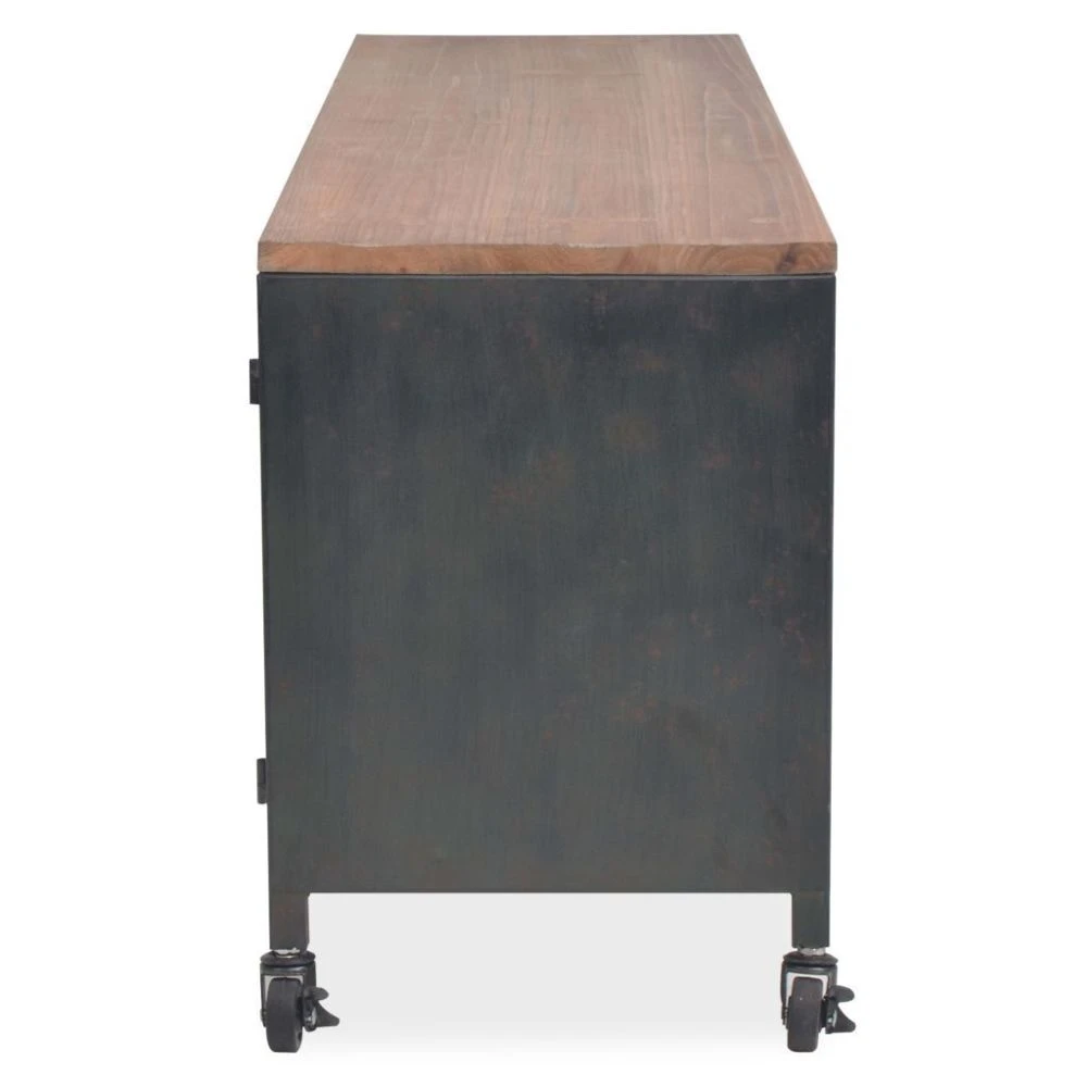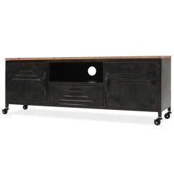 Ce meuble TV industriel élégant sera une belle addition décorative à votre chambre à coucher ou salon. L’armoire HiFi est en acier galvanisé, ce qui la rend presque indestructible et a un dessus en sapin solide. Elle peut avoir quelques imperfections, qui ne sont pas intentionnelles, mais ajoutent néanmoins au style antique et industriel spectaculaire de l’armoire. Le tiroir, l’étagère et les compartiments fournissent amplement d’espace de stockage pour votre récepteur numérique, lecteur DVD, console de jeu ou d’autres appareils multimédias et transporteurs, mais aussi des choses comme des livres, des bloc-notes, des stylos et autres bibelots. Le meuble TV est équipé de roulettes et peut donc être placé de manière flexible et facilement déplacé. L’assemblage est facile. Couleur : noir Matériau : acier galvanisé + dessus de table en bois de sapin solide Dimensions : 120 x 30 x 43 cm (L x l x H) Avec 1 tiroir, 1 étagère et 2 armoires Avec des roulettes Assemblage facile