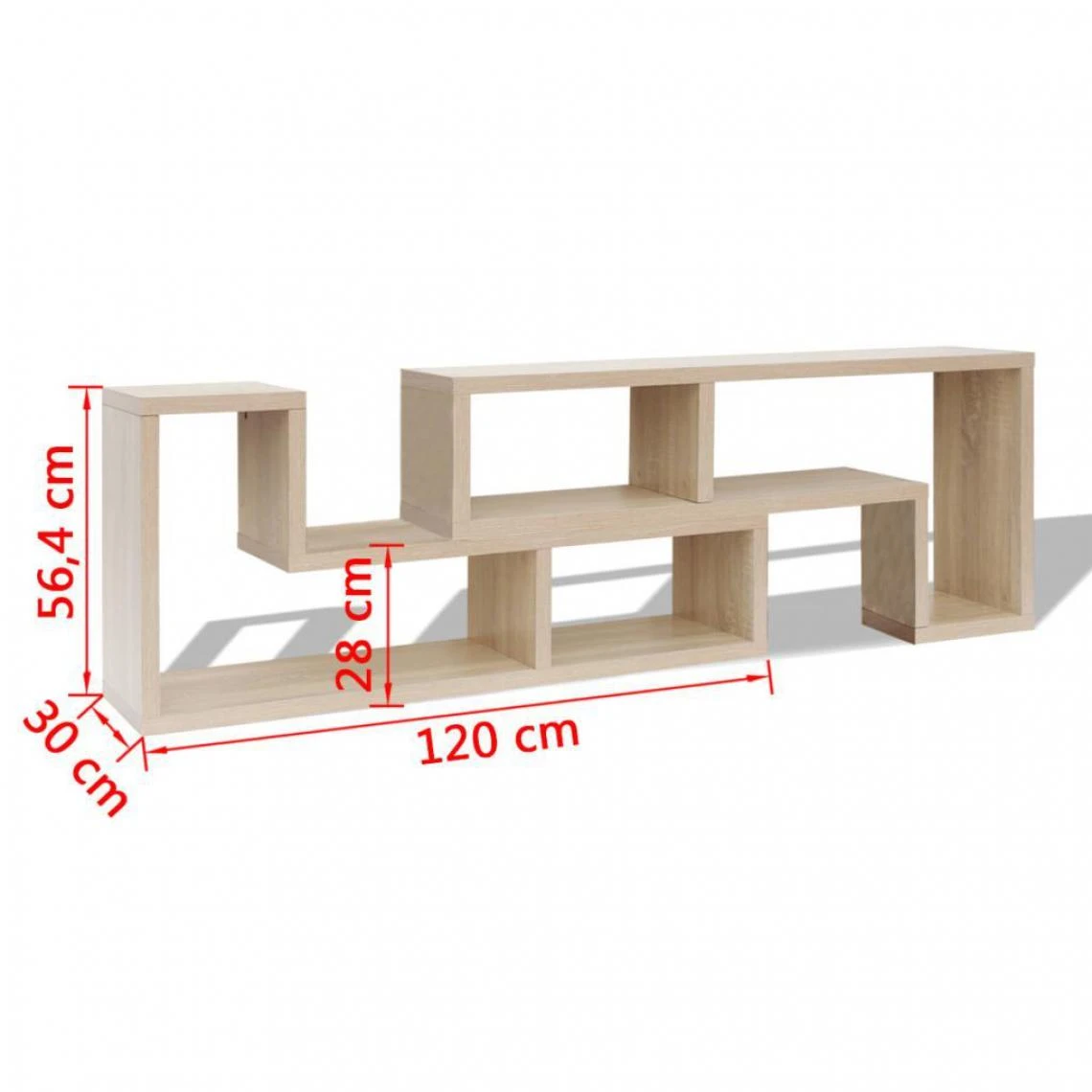 Ce meuble TV au design moderne et multifonctionnel sera un excellent ajout à n’importe quelle maison. Sa construction robuste rend ce meuble TV extrêmement durable. Le support TV est fait en deux étagères en forme de L, qui peuvent être placées de plusieurs façons. Les grandes étagères avec beaucoup d’espace vous permet de ranger soigneusement vos lecteurs DVD, consoles de jeu, appareil de diffusion en continu, appareils de stockage, objets décoratifs, etc. Soyez créatif et choisissez la meilleur configuration pour ce meuble élégant et fonctionnel ! Couleur : Chêne Matériau : aggloméré + FDM Dimensions de 1 étagère en forme de L : 120 x 30 x 56,4/28 cm (L x l x H) Composé de 2 étagères en forme de L Peut être placé de plusieurs façons