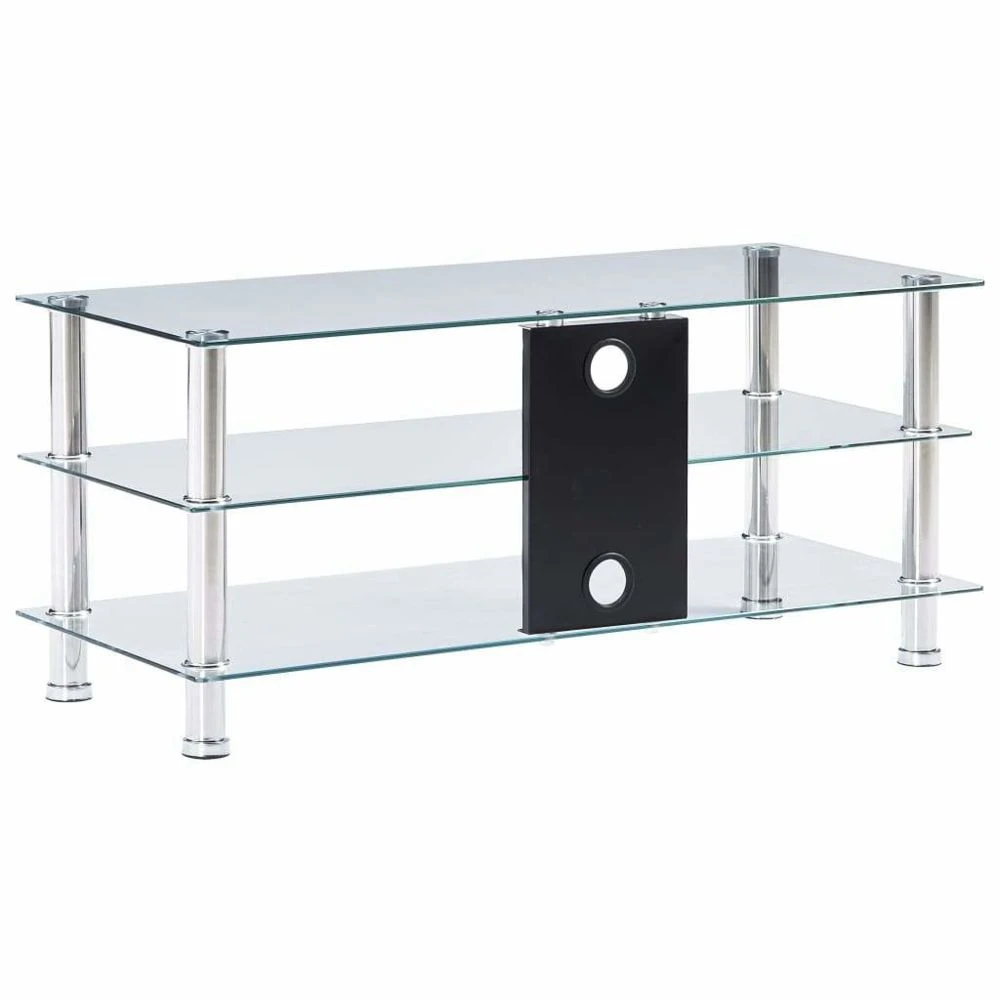 Points forts Helloshop26 Meuble télé buffet tv télévision design pratique transparent 90 cm verre trempé 2502218