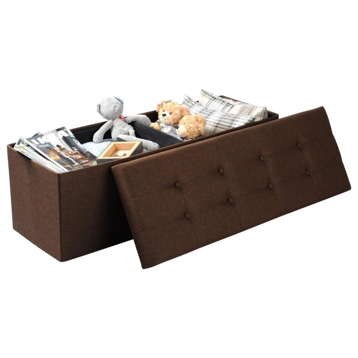 Points forts Helloshop26 Repose-pieds en lin avec espace de rangement pliable marron 19_0000509