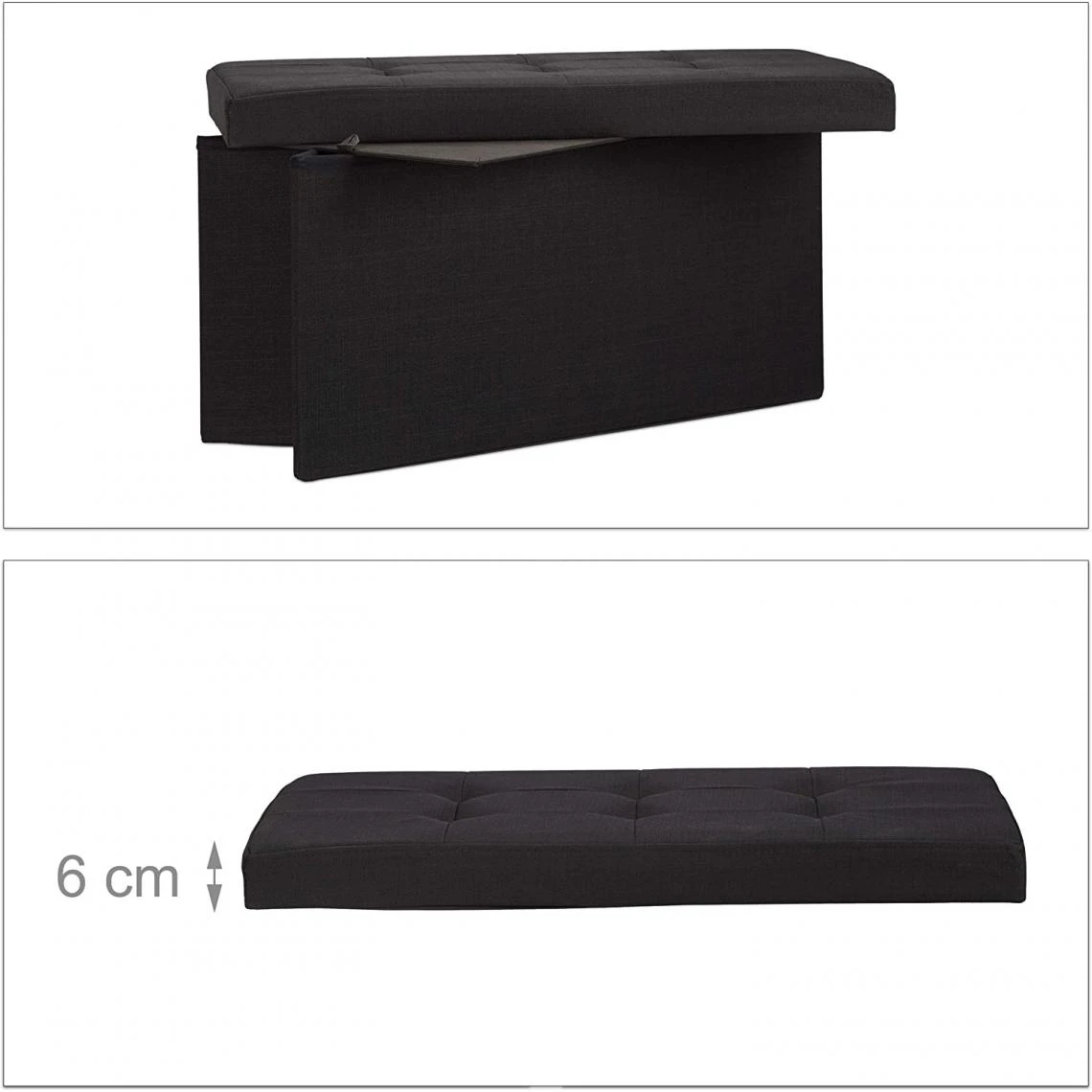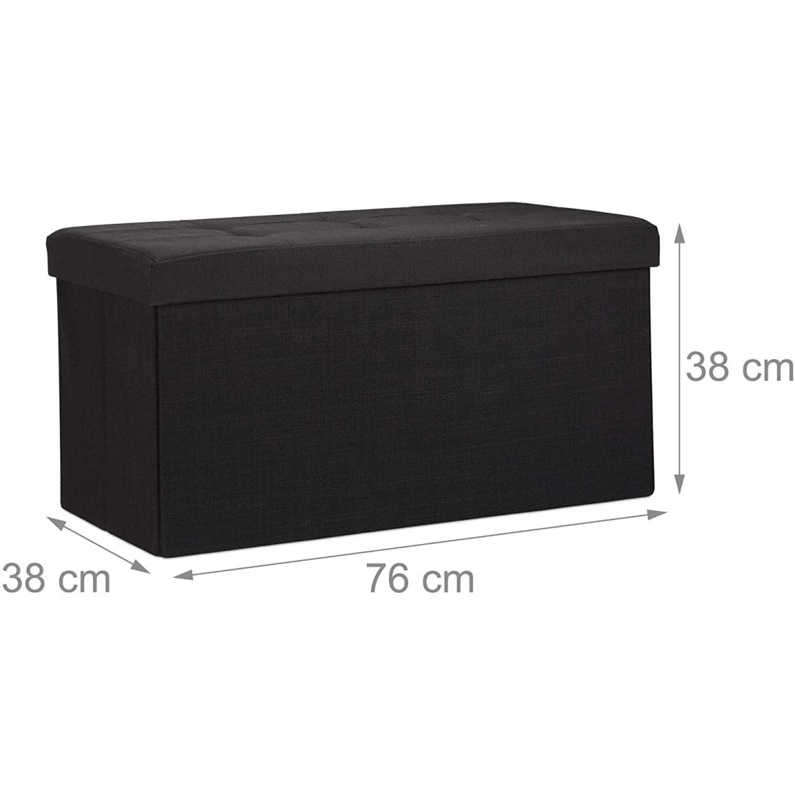 Points forts Helloshop26 Tabouret banquette pouf de rangement pliant coffre repose-pieds 76 cm noir lin 13_0002337